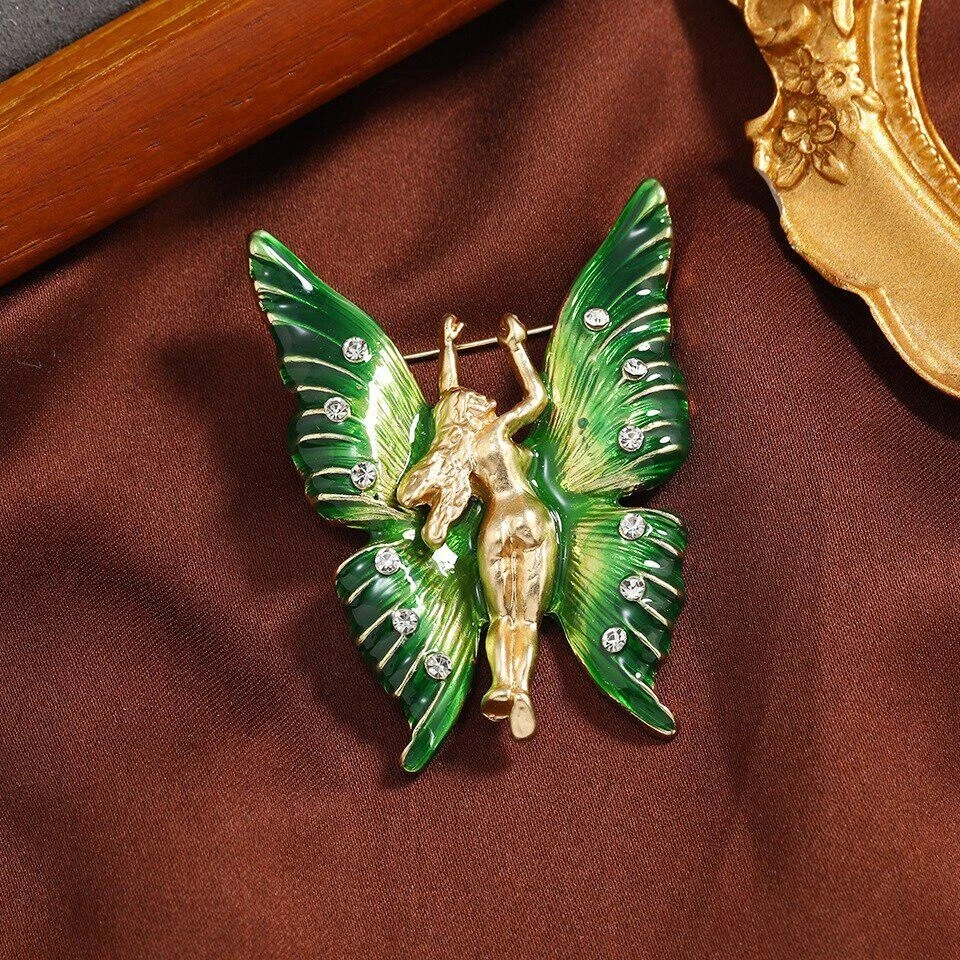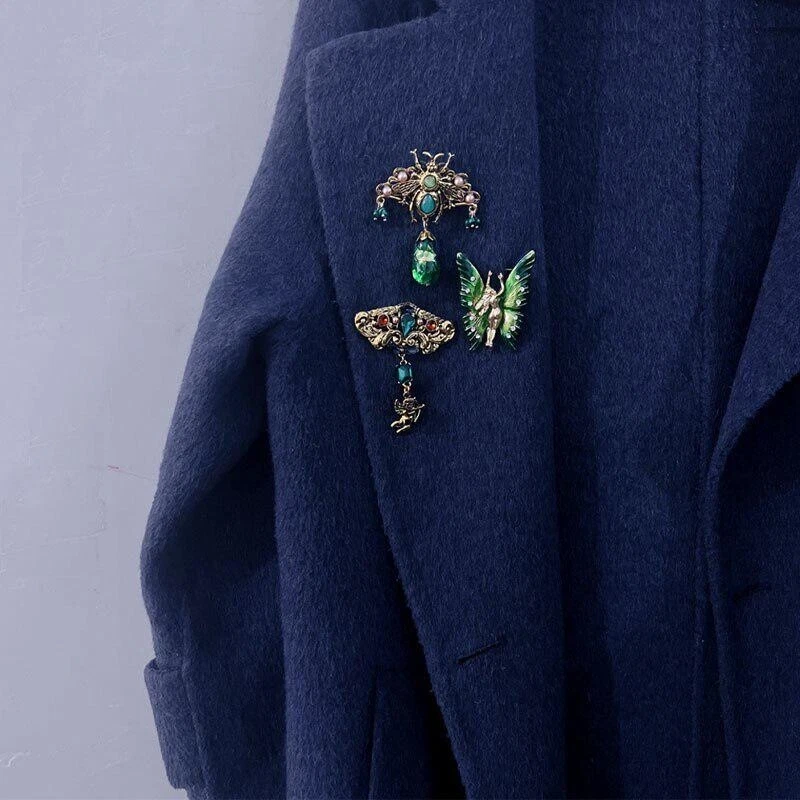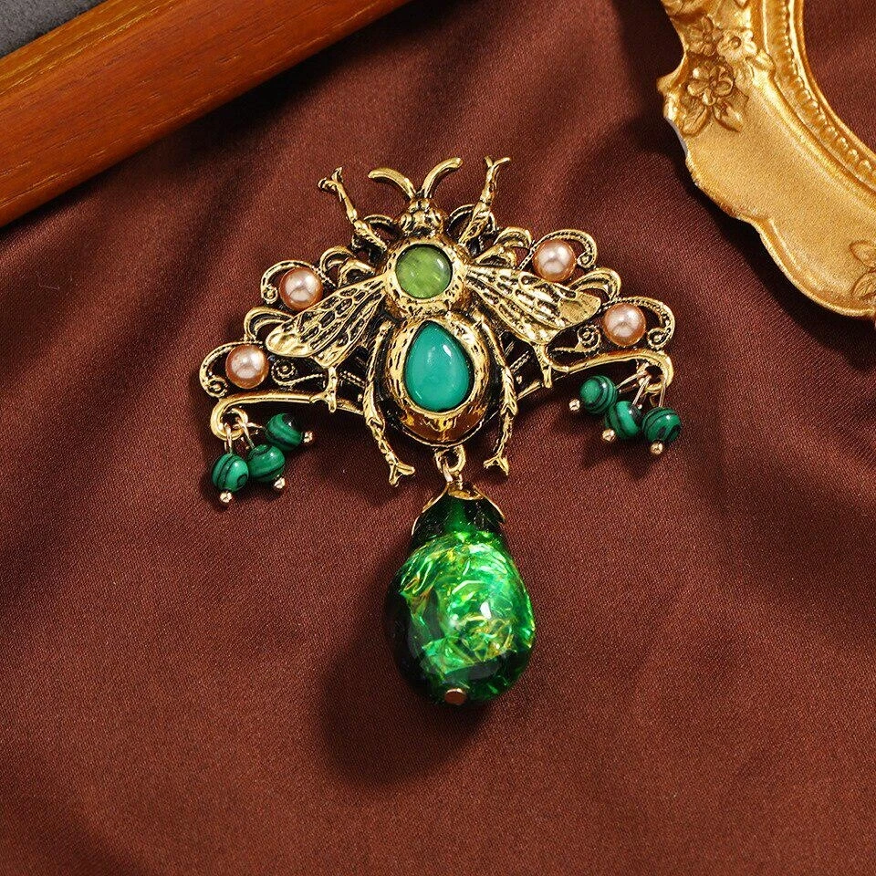 Vintage Green Crystal Brooch Women Luxury Tassel Butterfly Bee Pin Exquisite Pin
