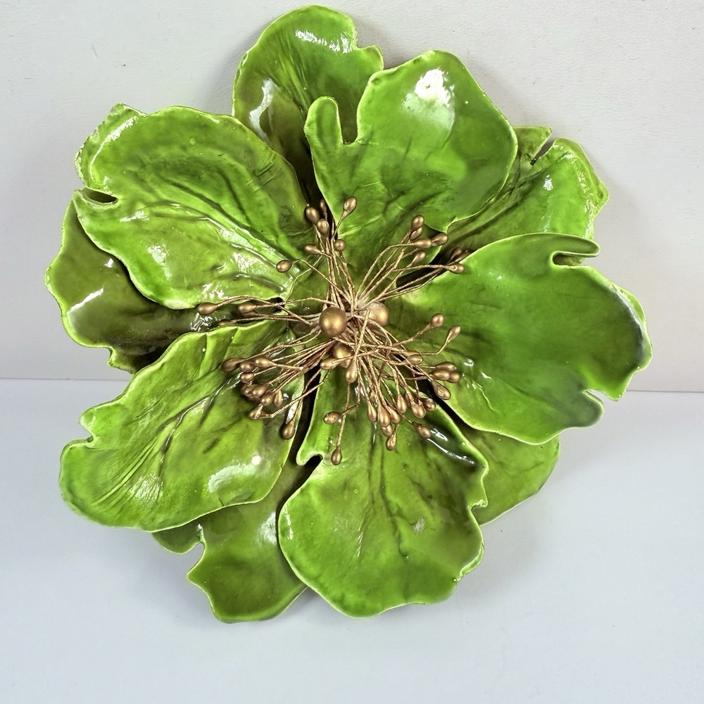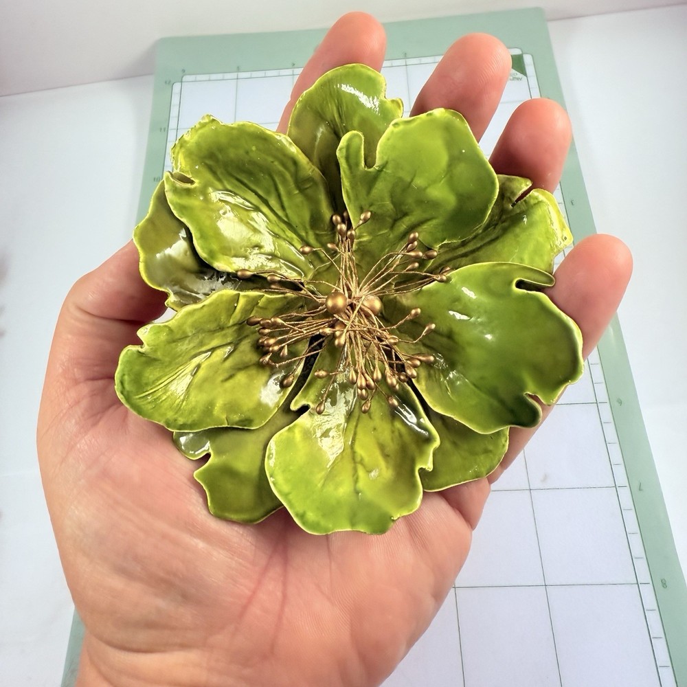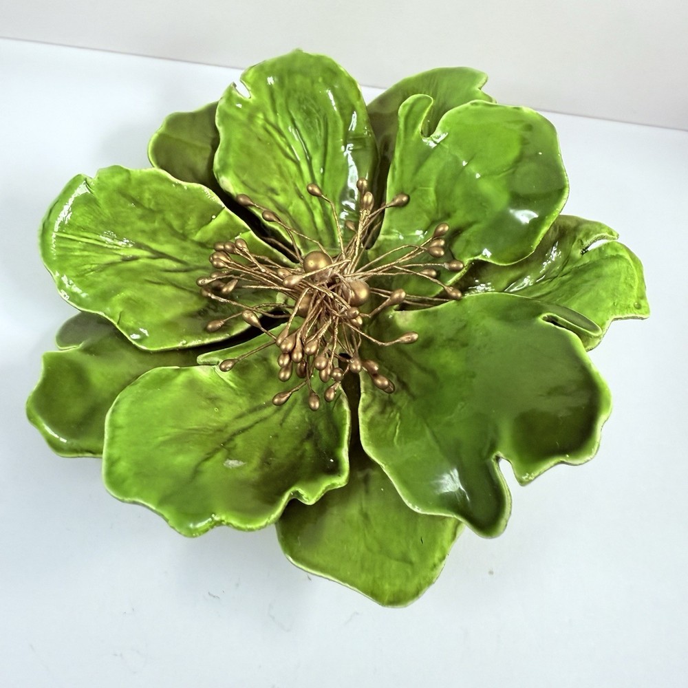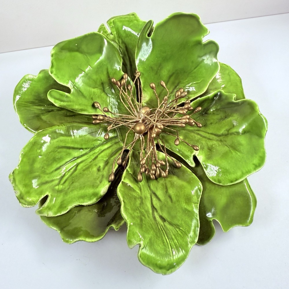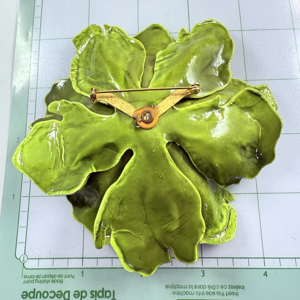 Massive Vintage Enameled Green Flower Floral Brooch Estate Pin. Not Sure of the Material Does Not Feel Like a Metal. Yet It Don’t Feel Like Plastic Either. Pre-Owned Estate Jewelry in Very Good Condition. Ready to wear, give as gift or add to a collection. Our Vintage items are mostly from estate sales and vary in age from 100+ years old to more modern pieces. Please use your judgement. Items are photographed on a measuring matte with one-inch squares to give you an idea of size. Any photography props / holders you see are not included.
