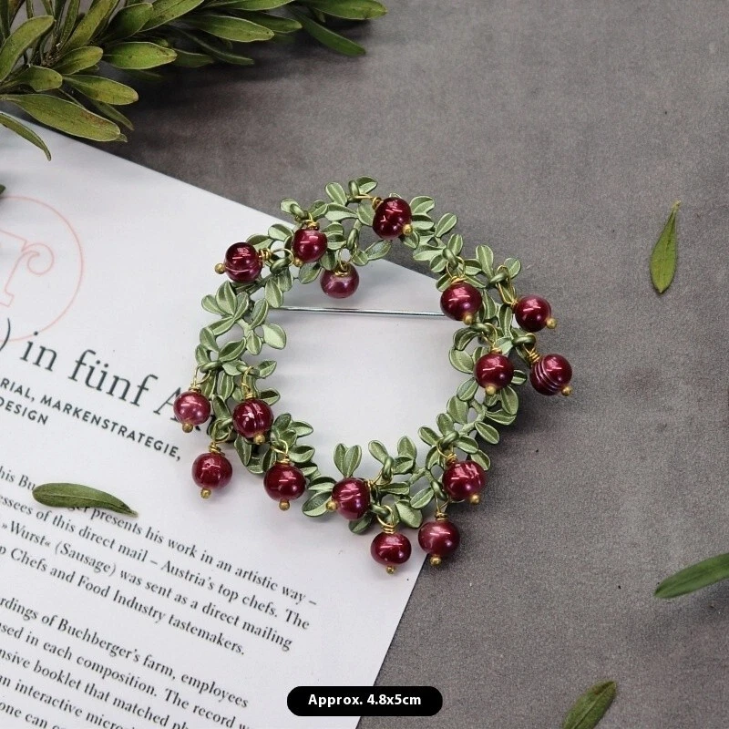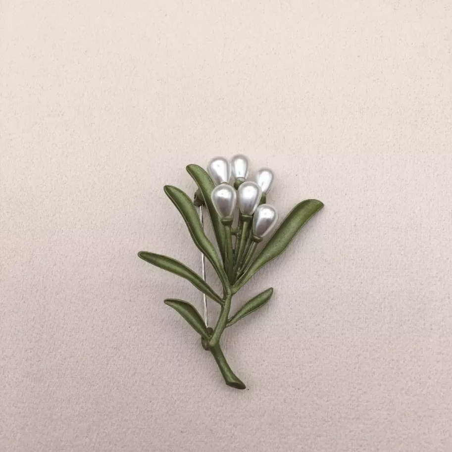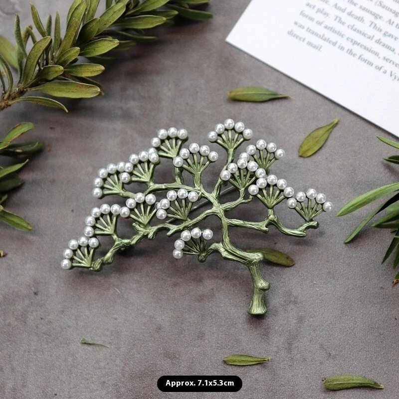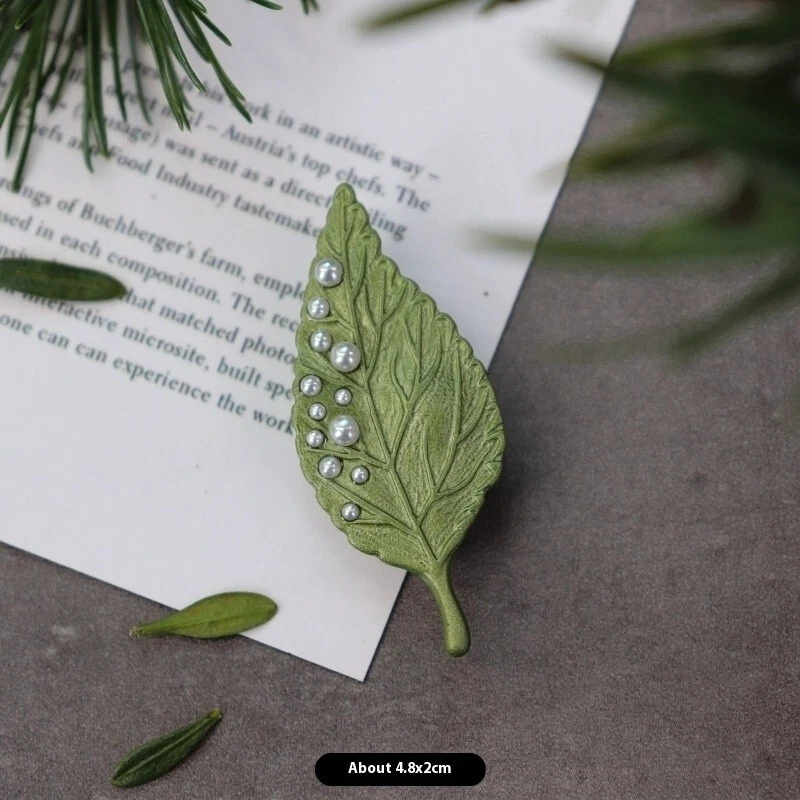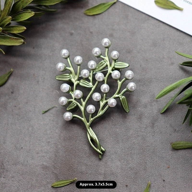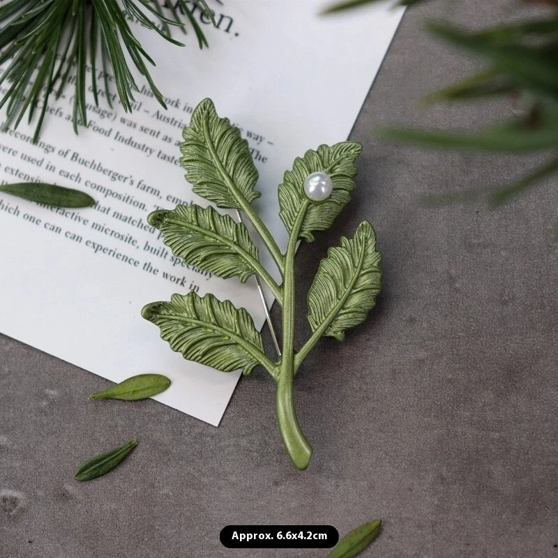 Vintage Green Color Plant Pearls Brooch Pin Flower Brooch For Women Jewelry Gift
