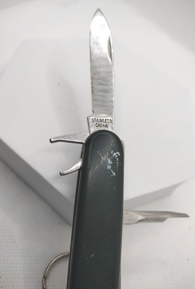 Vintage Swiss Army Knife Green 5 Options Keychain Knife. One blade, bottle opener, two fork looking options, and awl 3.25in long The knife blade is 2in long On a keychain **Inside has oxidation but the blade is stainless steel We use our pictures as part of our condition and description on each item. This item may need to be polished or cleaned as we try to keep everything how we found the item. Combined shipping on orders is always available! *Props are not included, such as jewelry boxes, earring holders, ECT... **Please follow the Biba Dushi Treasures store so that you are notified of new items!!!! ***No returns on International Sales!!! International Shipping will ONLY be through Global Shipping!!!!