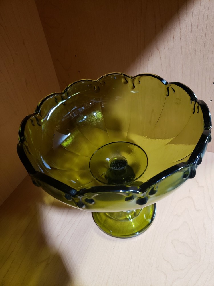 Vintage Indiana Glass Green Teardrop Compote Candy Dish Nut Bowl. Condition is good "Used". Shipped with USPS Priority Mail.