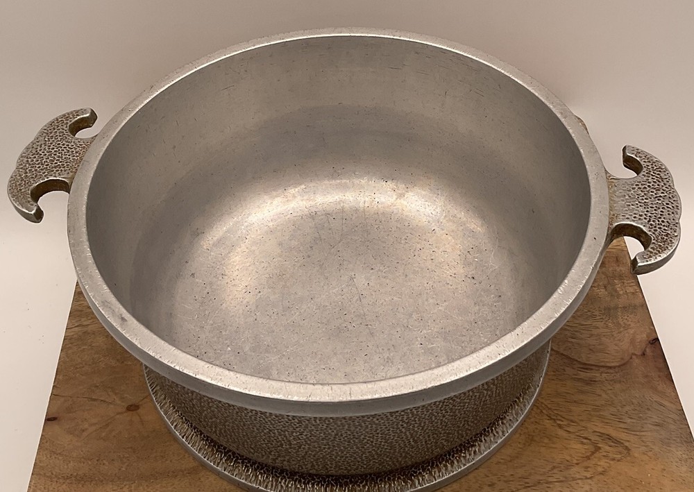 $ 20.06VTG Normandy Dutch Oven Enamel Serving Pot with Lid Floral Design Brass Handles