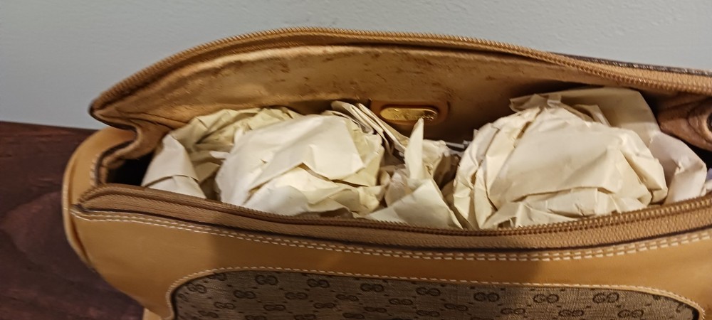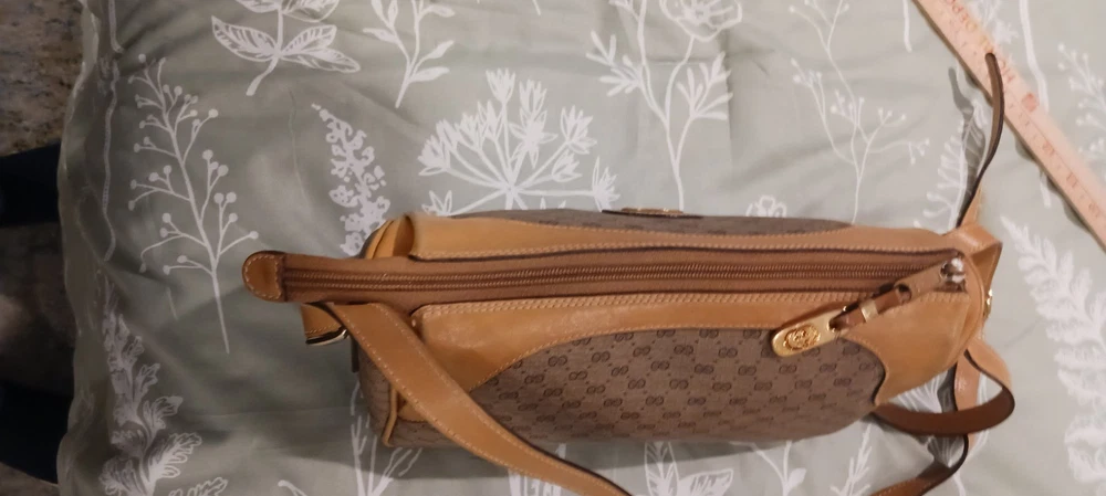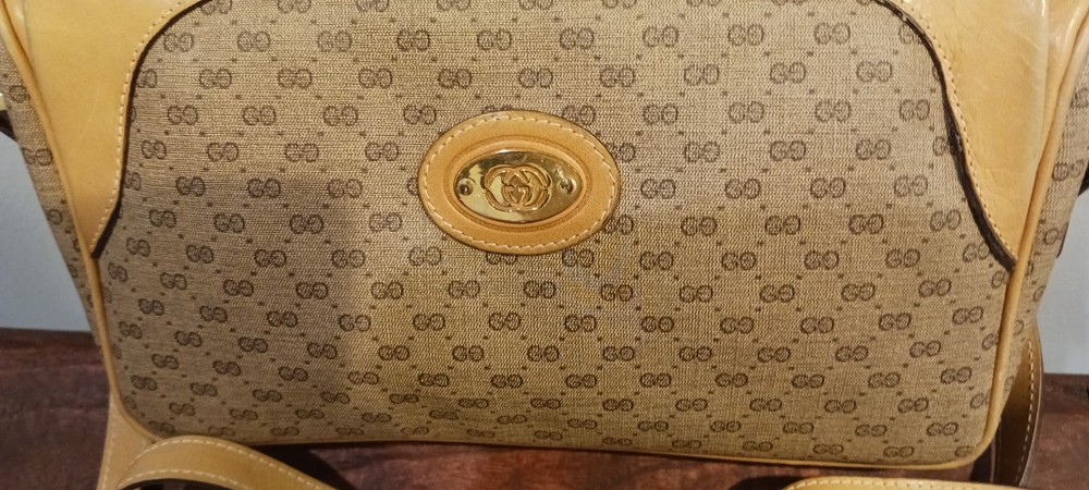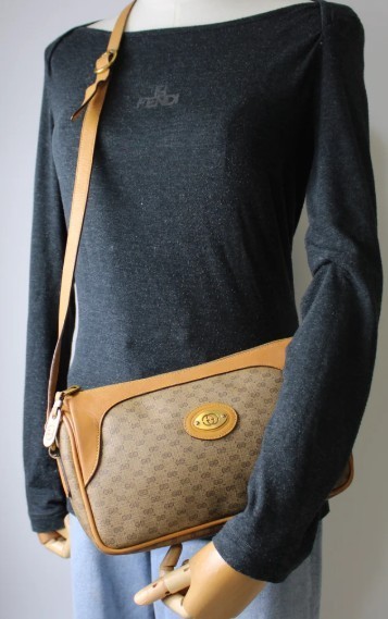 Authentic Gucci Brown Monogram PVC and Leather Crossbody Bag. This exquisite piece features Gucci's signature GG monogram pattern on durable PVC canvas, complemented by luxurious tan leather trims and an adjustable leather strap. The front is adorned with a gold-tone Gucci logo plate, adding a touch of sophistication to this vintage treasure. The bag is in very good vintage condition. There is no discoloration on the leather with minor wear on the lining. The bag's craftsmanship and timeless design ensure it remains a standout piece in any collection. Please refer to the detailed views in the pictures to get a closer look at the item's condition. Measuring approximately 10 inches in width and 6 inches in height, this crossbody bag is perfect for daily use or special occasions. The spacious interior provides ample room for your essentials, while the secure zip closure keeps everything in place. The adjustable strap allows for comfortable, hands-free wear, making it a versatile accessory for any wardrobe.