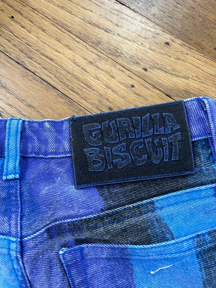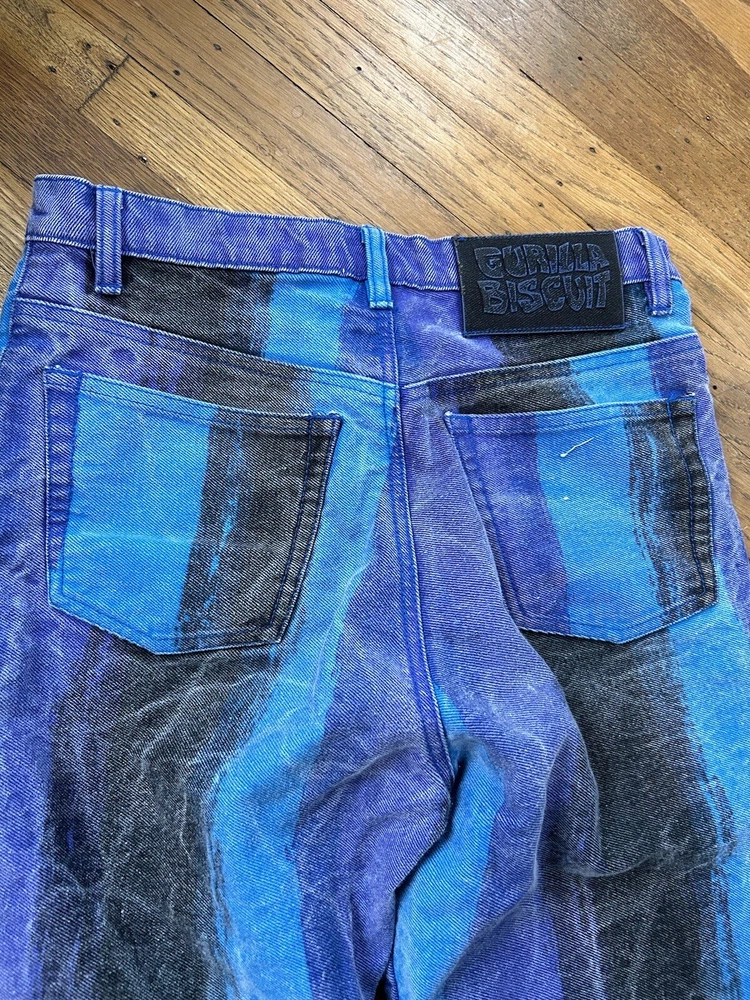 Vintage Gurilla Biscuit Striped Denim Jeans 90s Size 31 Unisex