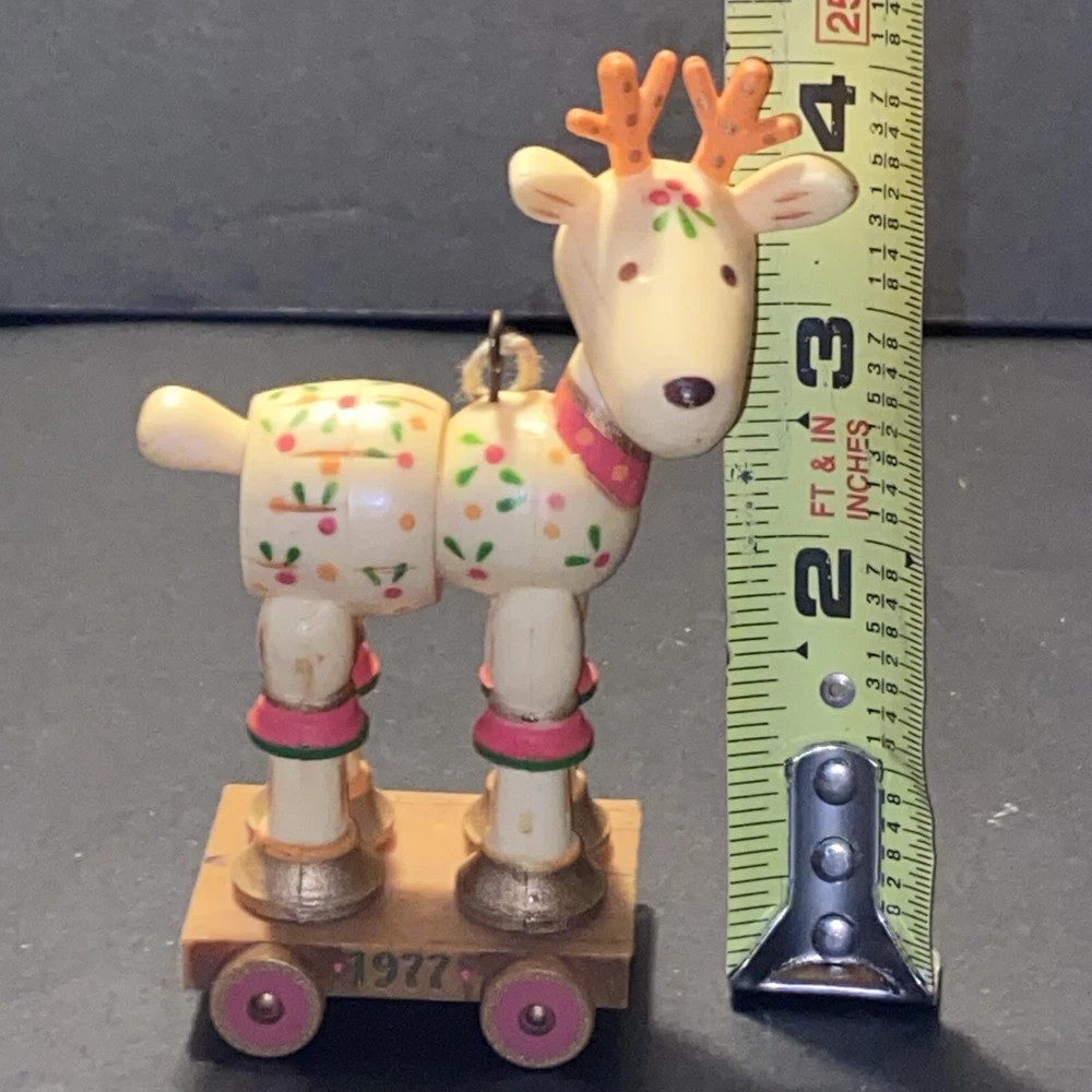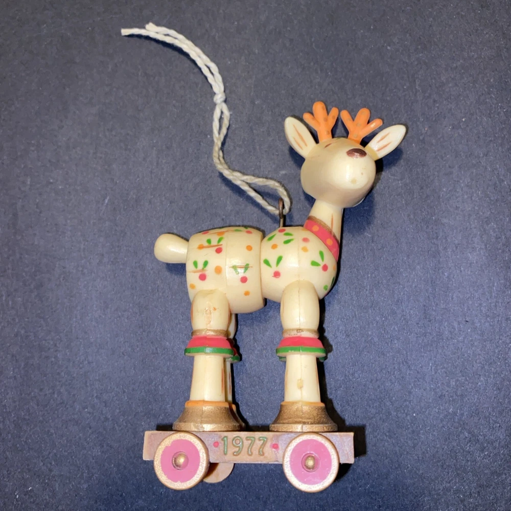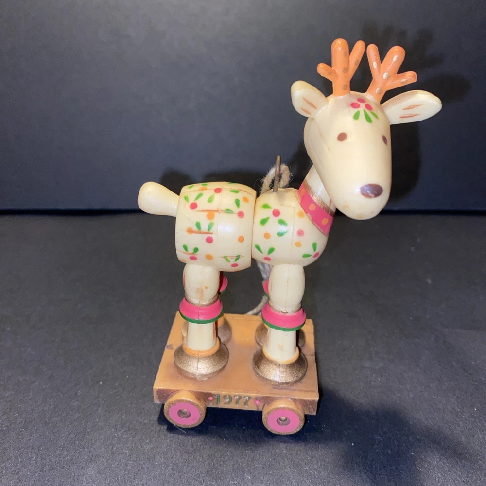 Vintage:YesOccasion:ChristmasNumber of Items:1Original/Licensed Reproduction:OriginalCountry/Region of Manufacture:Hong KongColor:MulticolorShape:ReindeerTheme:ChristmasYear Manufactured:1977Set Includes:OrnamentFeatures:VintageBrand:HallmarkType:OrnamentSubject:ReindeerCollection:Ornaments