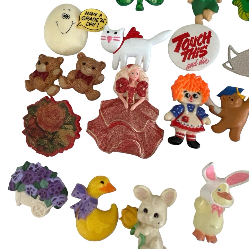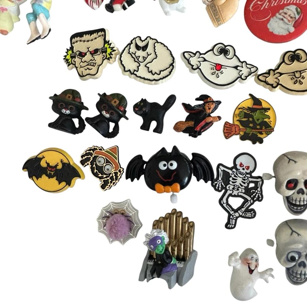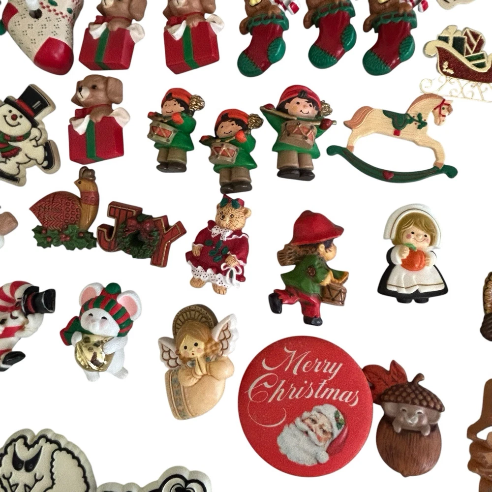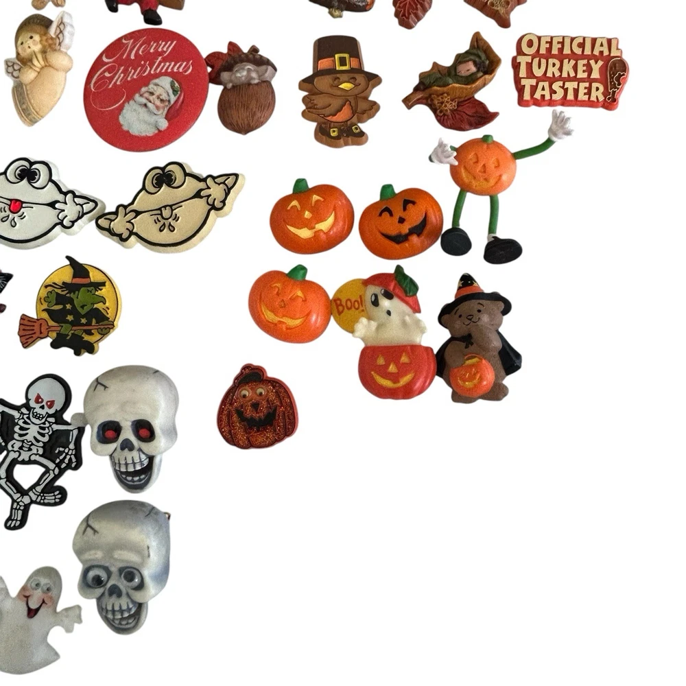 Vintage HALLMARK Variety Lapel Pins Various Holidays Lot of 101. Good pre-owned condition with normal vintage wear, a couple have light discoloration, rubs on color, see photos for details. Includes: 7 St. Patrick's Day, 32 Christmas, 6 Easter, 25 Halloween, 8 Thanksgiving, 10 Valentine's Day, 13 Misc. (SR)