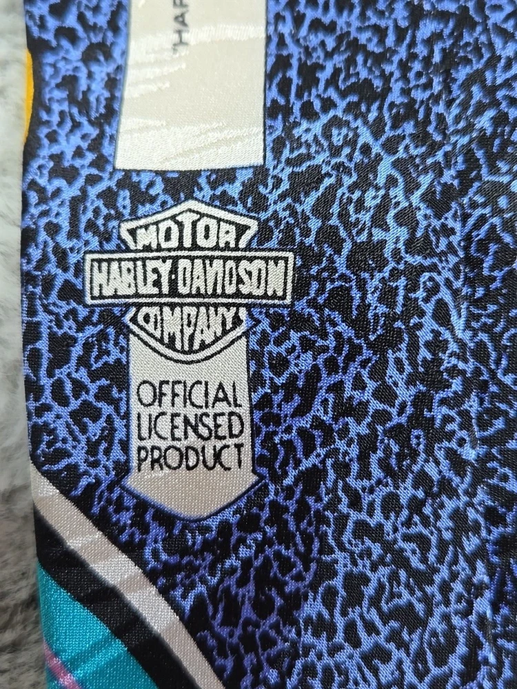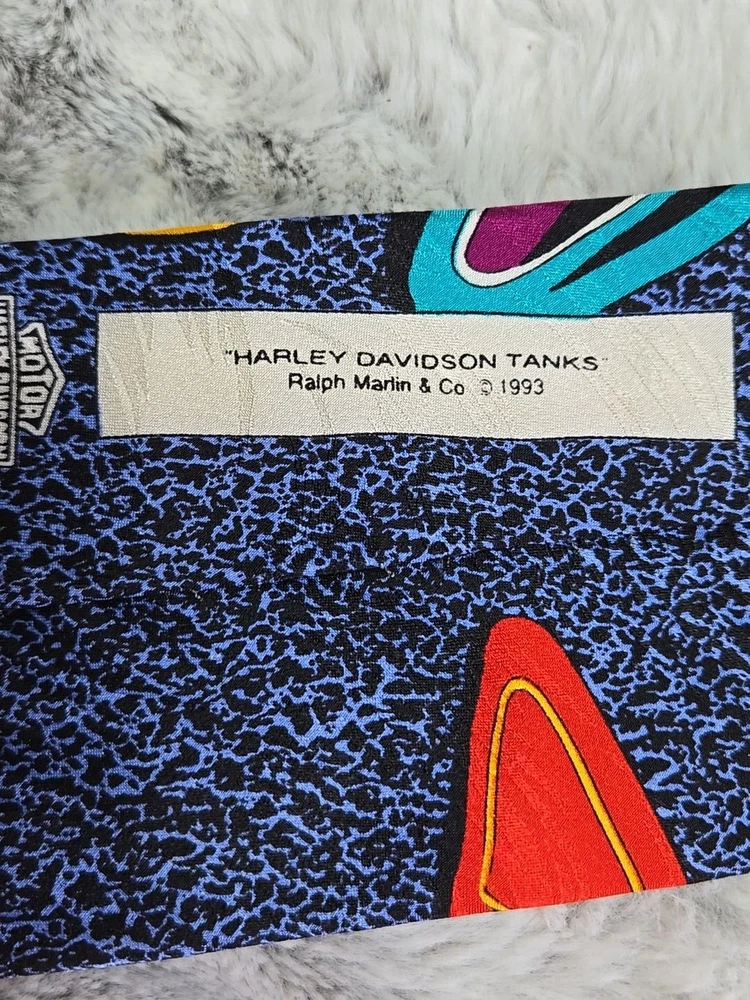 Vintage HARLEY DAVIDSON Fuel Tanks Ralph Marlin Silk Flames Shield Logo Neck Tie