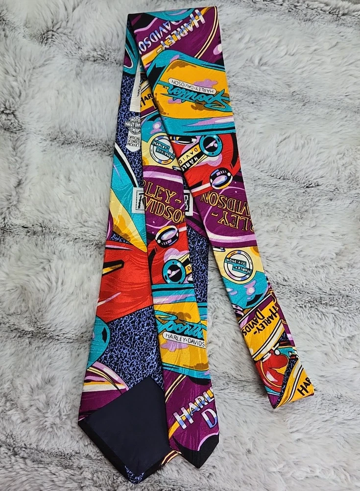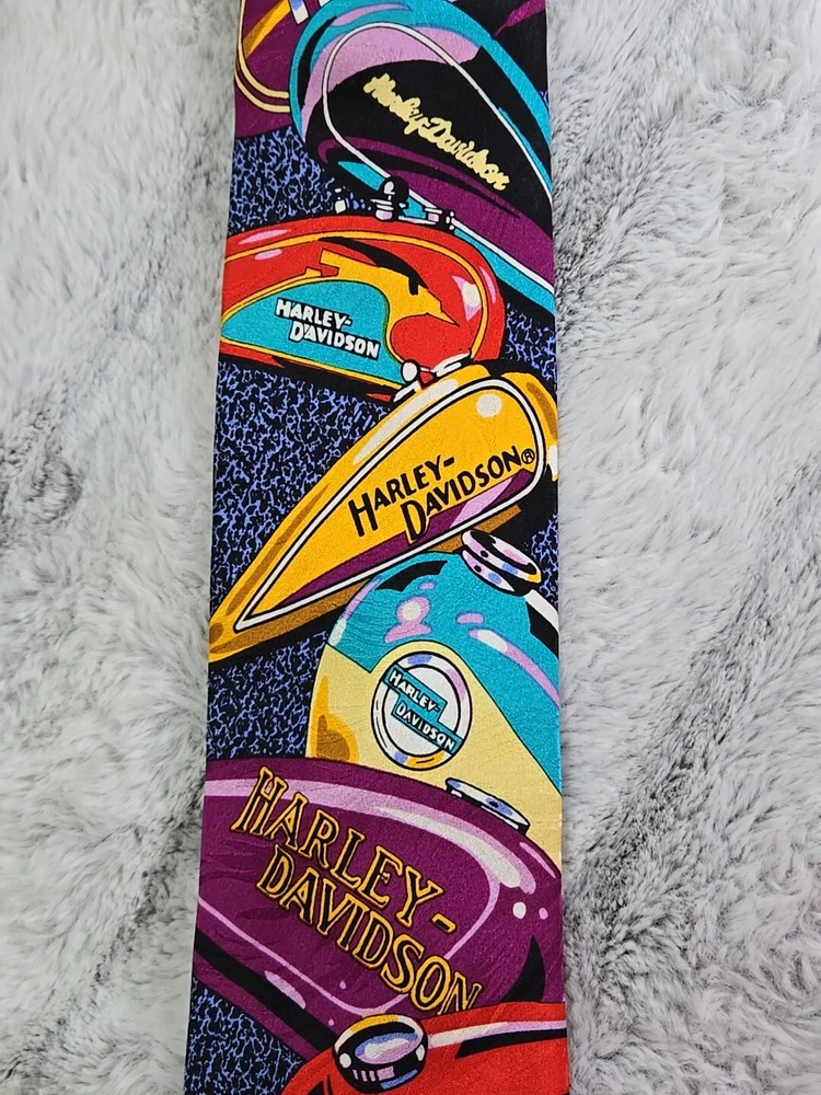 Attachment Type: Tied Department: Men UPC: Does not apply Brand: Ralph Marlin Accents: Logo Theme: American, Bike, Motorcycle gtin13: Does not apply Type: Tie Style: Designer Material: Silk Item Width: 3.75 in Item Length: Classic (57"-60") Character: Biker Pattern: Harley Davidson Color: Multicolor Country/Region of Manufacture: United States Fabric Type: silk