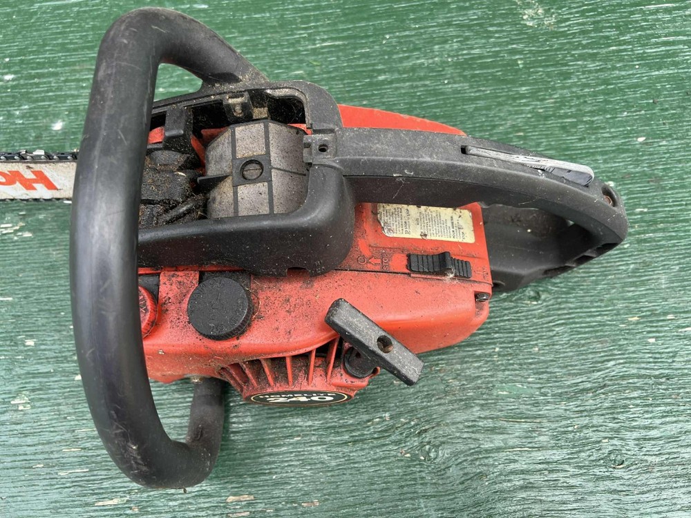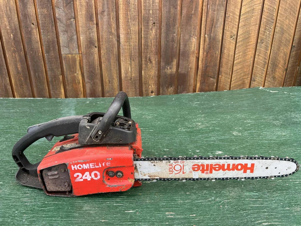 Just found at a local estate sale...a very interesting old chainsaw. This is a HOMELITE 240 chain saw with 16" bar. I pulled on the cord and it has compression. I don't know much about chainsaw...so please have a look at the photos.