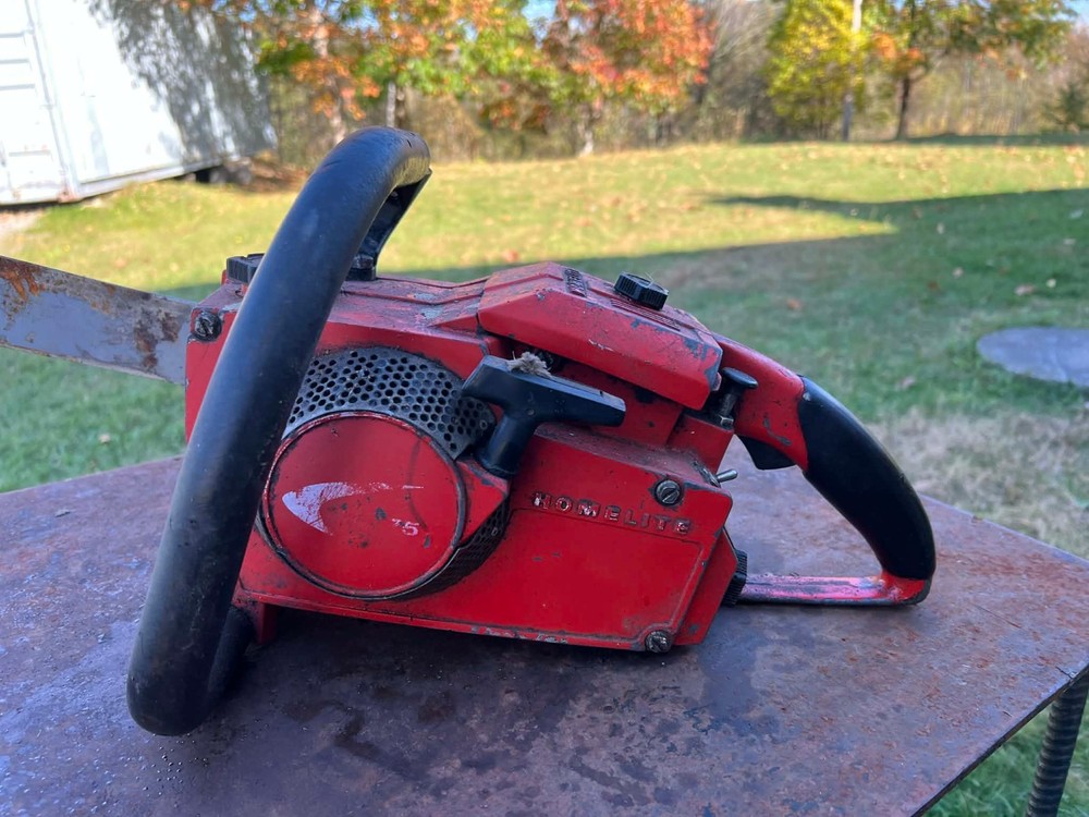 Just found at a local estate sale...a very interesting old chainsaw. This is a HOMELITE XL-75 chain saw with 16" bar. I pulled on the cord and it has compression. Good for parts or to restore. I don't know much about chainsaw...so please have a look at the photos.
