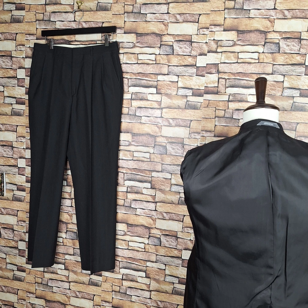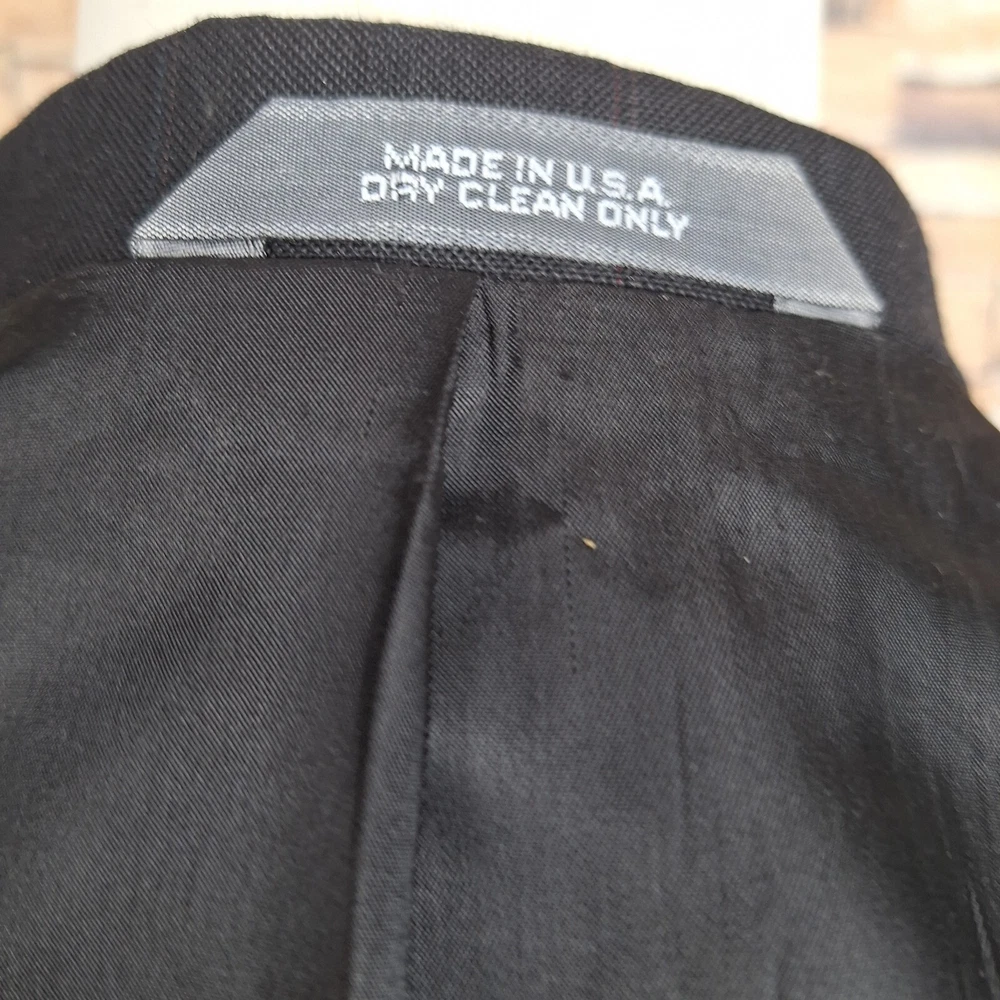 Features: Inner Pockets Color: Black Jacket Vent Style: Single-Vented Handmade: No Jacket Front Button Style: Two-Button Fit: Regular Season: Fall, Spring, Summer, Winter Jacket/Coat Length: Regular Type: Suit Number of Pieces: 2 Piece Jacket Sleeve Button Style: Four-Button Lining Material: Viscose/Rayon Front Type: Pleated Size Type: Regular Jacket Cut: Single-Breasted Style: 2 Piece Department: Men Personalize: No Pattern: Striped Chest Size: 40 Occasion: Business, Casual, Formal, Party/Cocktail, Travel, Wedding Waist Size: 32 in Seller Notes: “Quality used condition. Please check out the measurements before buying to ensure a perfect fit.” Country/Region of Manufacture: United States Brand: Haggar Jacket Lapel Style: Notch Garment Care: Dry Clean Only Size: 40 gtin13: Does not apply Theme: Classic, Designer, Elegant, Modern, Preppy, Wedding UPC: Does not apply Material: Polyester, Wool Vintage: Yes Inseam: 30
