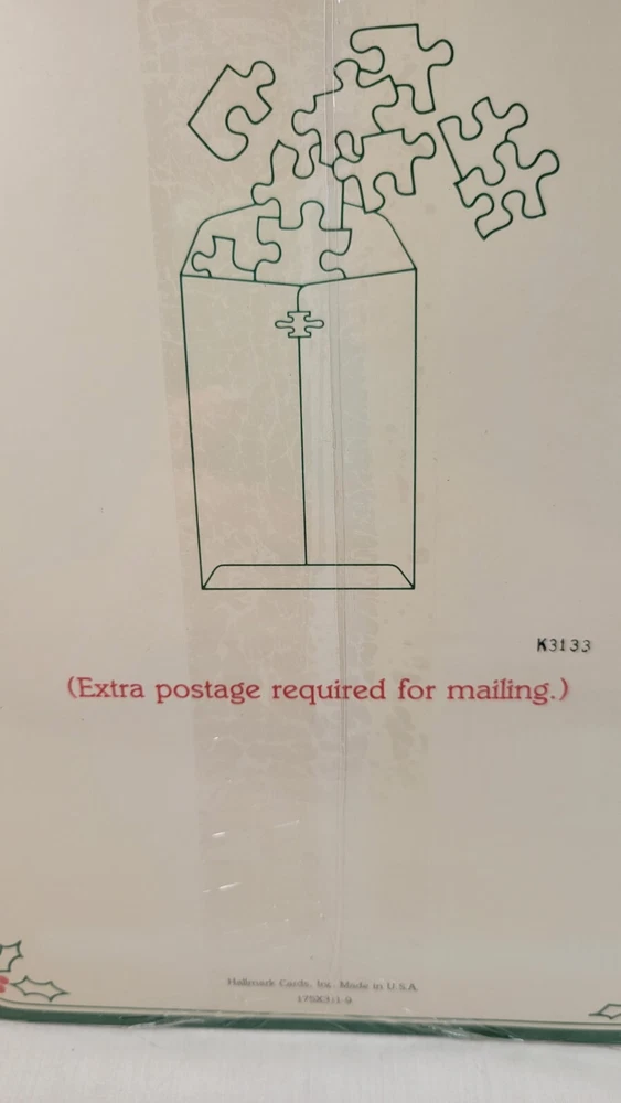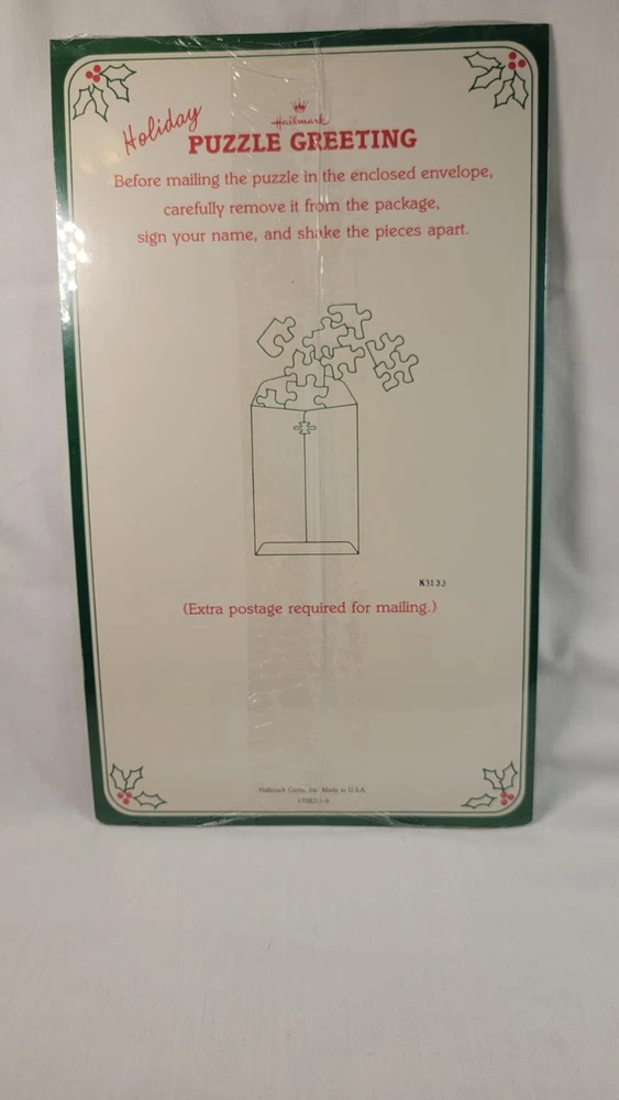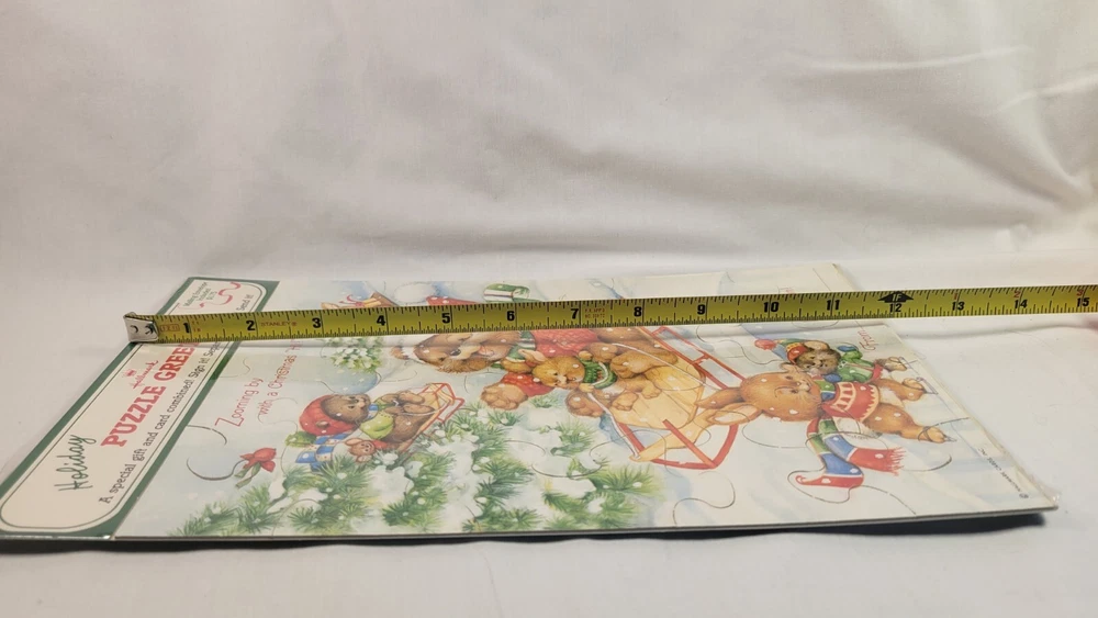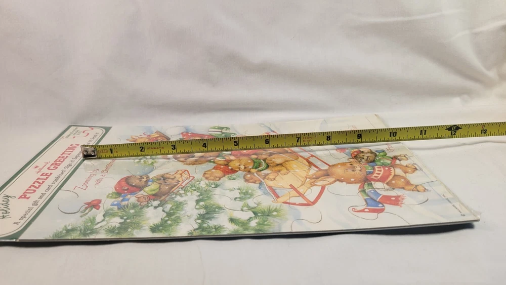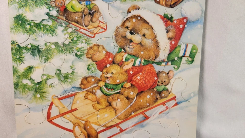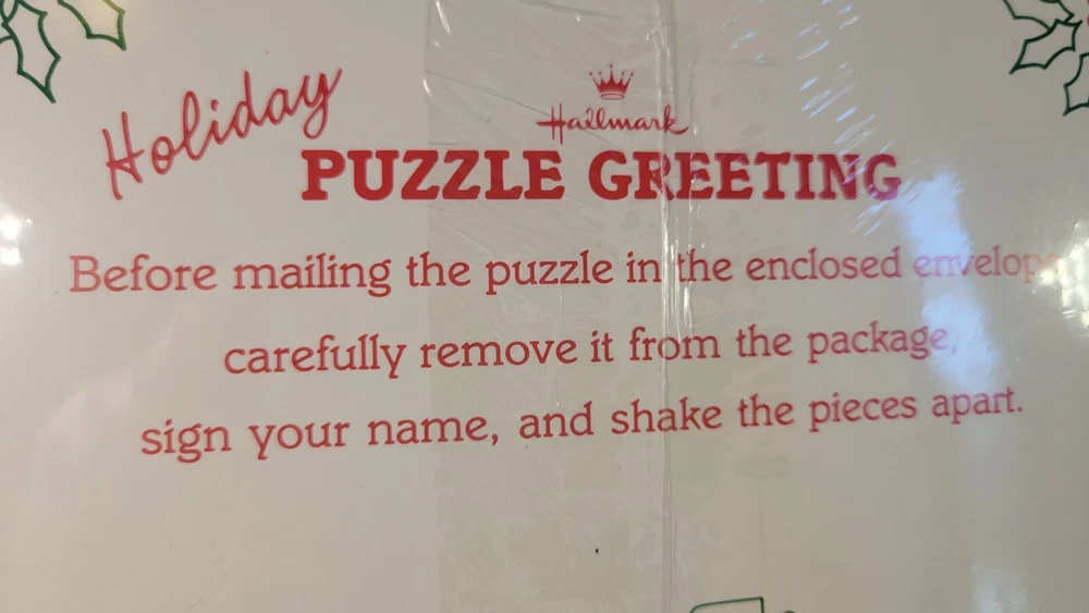 Vintage Hallmark Holiday Puzzle Greeting Card Sealed. Zooming by with a Christmas "Hi"! Very cute Wintery scene with animals sledding amd skating in the snow. Perfect way to send a Hi to a loved one or friend. Comes from a smoke-free environment.