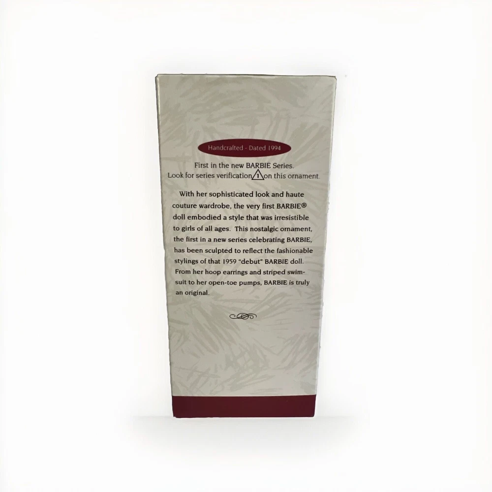 Brand: Hallmark Collection: Ornaments Pattern: Striped Subject: Barbie Theme: Christmas Occasion: Christmas Set Includes: Ornament Vintage: Yes Features: Vintage Type: Ornament Color: Black Year Manufactured: 1994 Character: Debut Barbie 1954