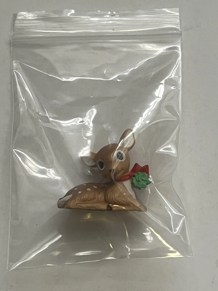 Vintage 1987 Hallmark Merry Miniature Mini featuring a FAWN LYING DOWN with a red bow and green holly around it's neck . He is approximately 1inch high and 1 inch wide. The gold sticker is intact. Very nice! Nice for a small space display or under a very tiny tree. Part of my mother’s massive Hallmark Miniature collection most purchased from store shelf and never displayed. I will be listing from this collection daily. Thank you for checking it out! Shipped USPS Ground Advantage and shipping will automatically be be combined when additional items are placed in your cart.