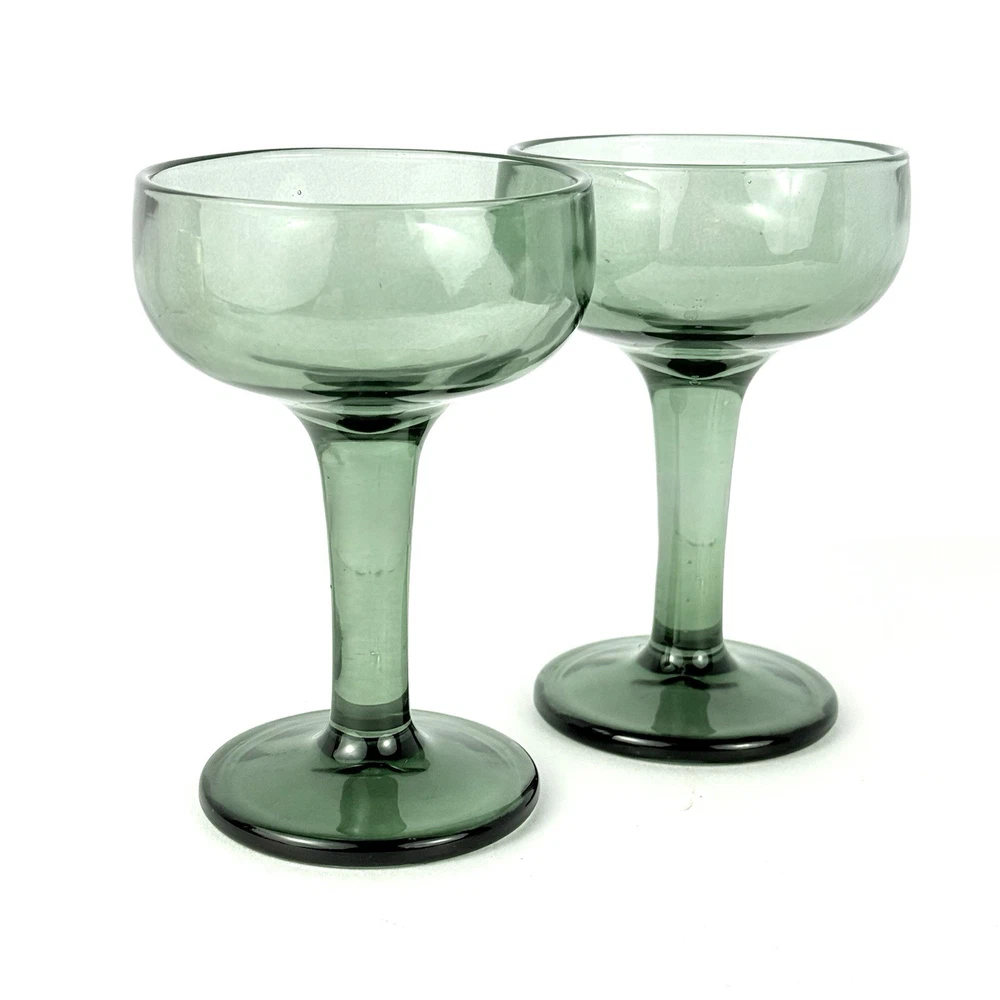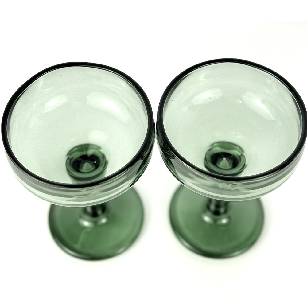 Elevate your cocktail experience with this stunning set of 2 handmade margarita glasses. Crafted from thick, hand-blown glass, these glasses boast an elegant avocadogreen hue that adds a pop of color to any table setting. Perfect for all occasions, these glasses are sure to impress your guests and make your cocktails look as good as they taste. Each glass stands at 5.5 inches tall and is made in Mexico, where skilled artisans carefully shape and blow the glass to create these unique pieces. Let me know what questions you have. Blessings to you!💚💚💚🩶🩶🩶🩶🤍💚