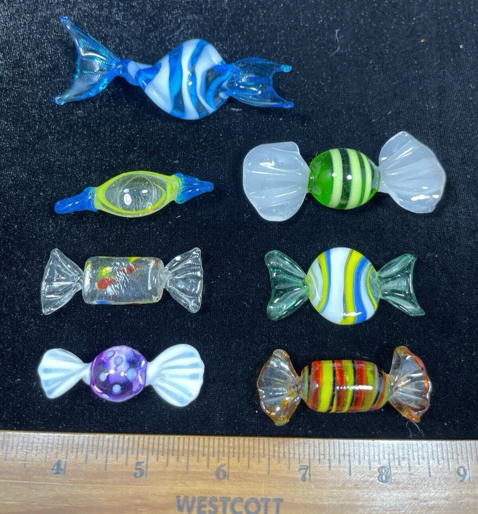 Seven glass wrapped candy figurines. They are in excellent condition. Please see photos for more details. Please note that the item is vintage and may show signs of wear. We have done our best to honestly and accurately describe and photograph the item, including possible flaws. What you see are the actual photos of the item being sold. If you have any questions regarding the item, please ask! We DO NOT SELL outside United States. SHIPPING The item will be shipped within three business days after receipt of payment. We ship via USPS to any location within the 48 continental United States, NO INTERNATIONAL SHIPPING. Shipping is calculated by EBAY based on the weight and size of the item plus packaging. We can combine shipping in case you buy multiple items that can be safely shipped together. Thanks for looking!
