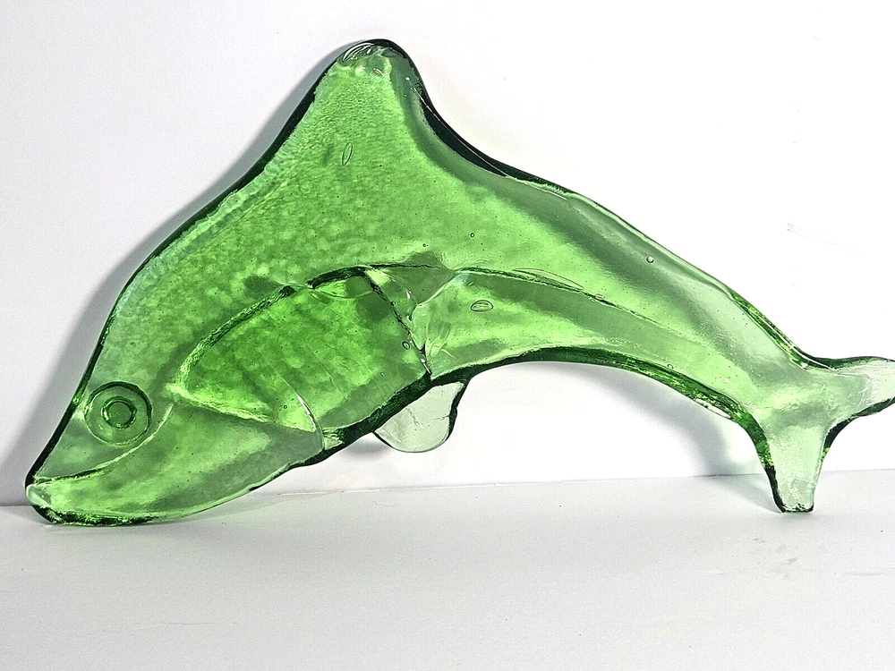 Vintage Hand Blown Green Glass Dolphin Figurine 11.5"L . This item is a must-have for anyone who loves collecting figurines, dolphins, or fish and marine life. Excellent condition - no chips, cracks, or fleabites. Please do not hesitate to contact me with any questions. Thank you for looking!
