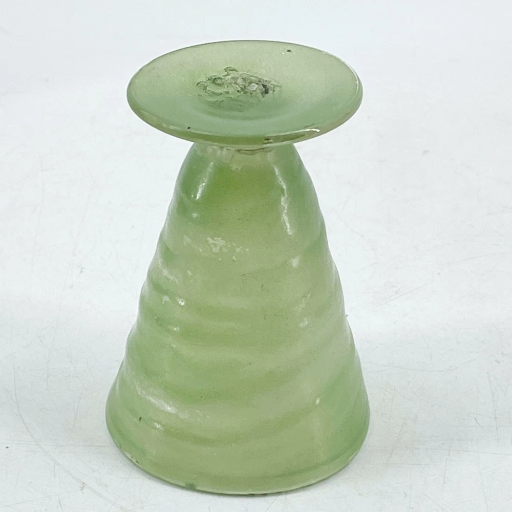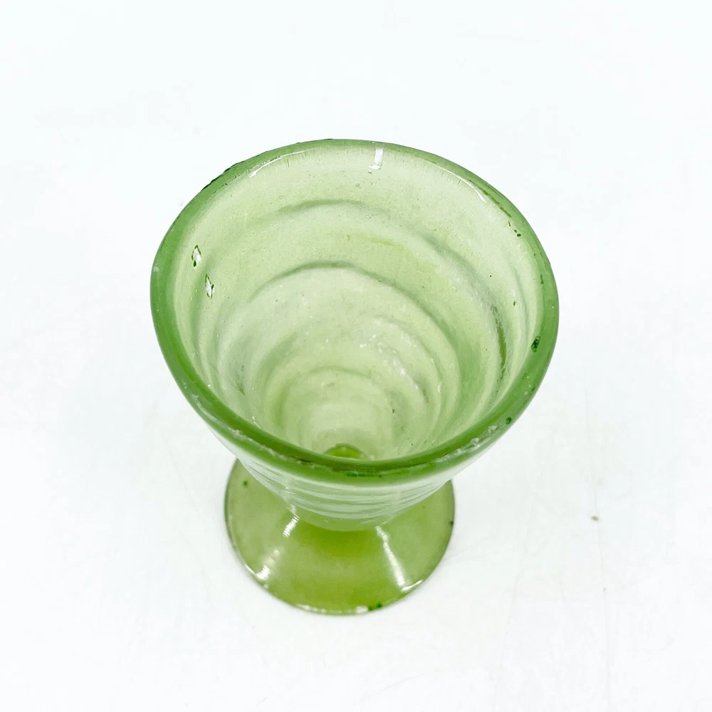 Vintage Hand Blown Swirl Art Glass Footed 4 Sherbet Tumbler Cup Green 2 1/4" diameter at top rim and 3 1/8" tall. Visible rough pontil on base.