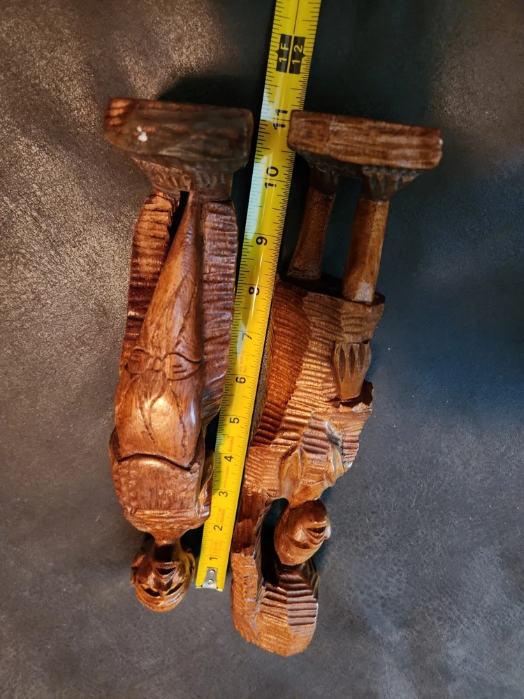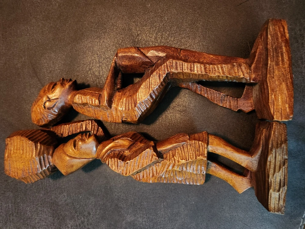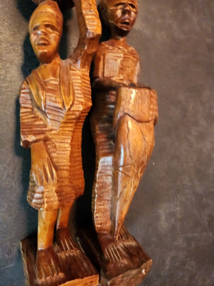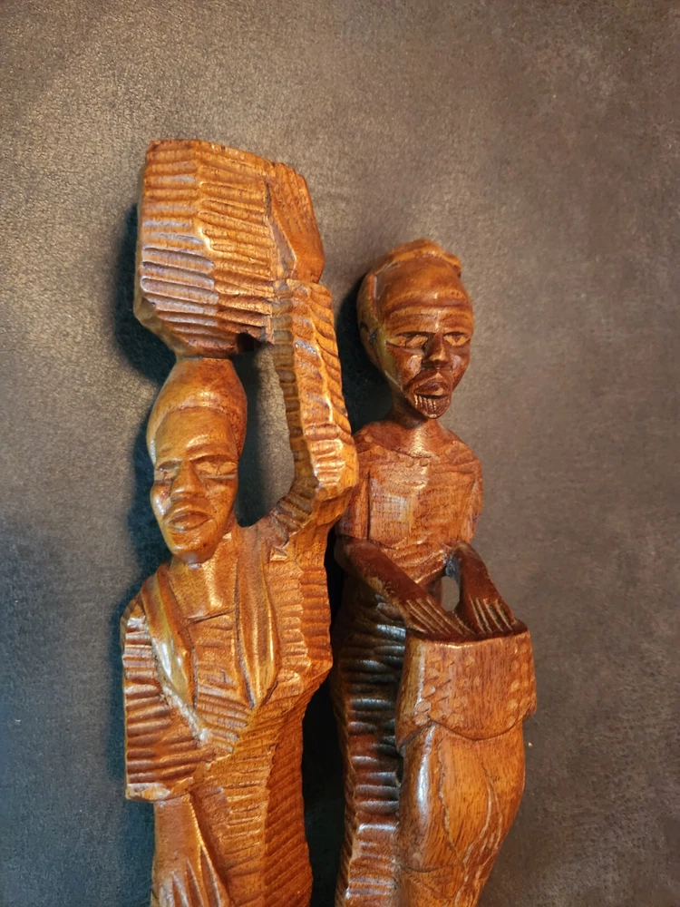 Vintage Hand Carved Wood Statue Man & Woman With Basket Figure " Tall Set Fala.