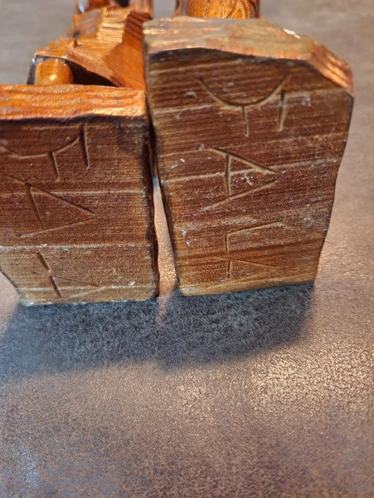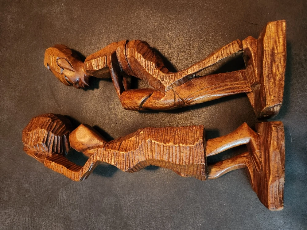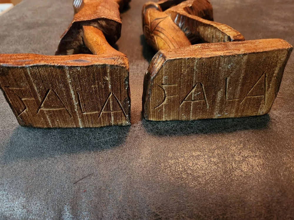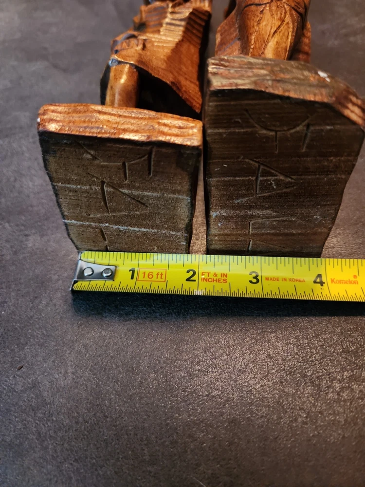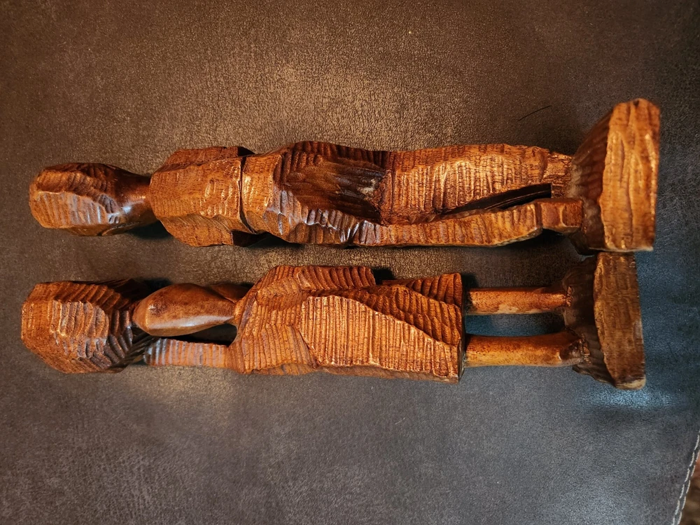 Vintage Hand Carved Wood Statue Man & Woman With Basket Figure " Tall Set Fala.