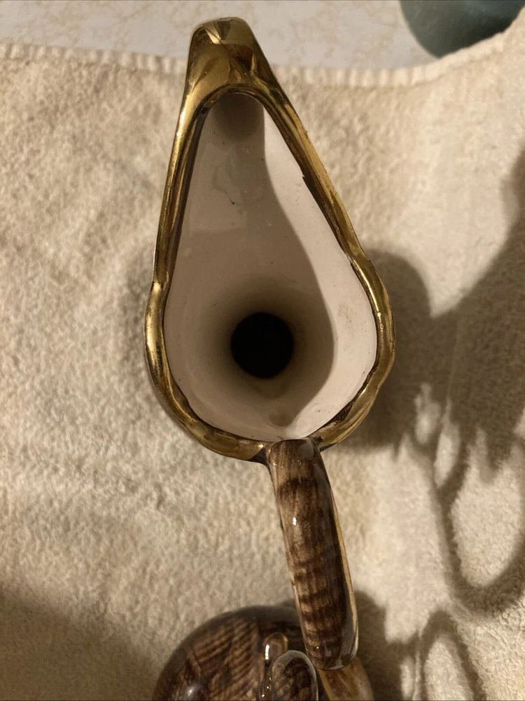 This vintage vase/pitcher is a unique addition to any collection. Hand painted by Hubert Bequet, this piece showcases exquisite craftsmanship. The porcelain and ceramic materials used in its construction give it a high-quality feel. Its colorful finish adds a touch of whimsy to any decor. This item was manufactured in Belgium between 1920-1949 and features a beautiful multicolor design. The vase/pitcher is in great shape and is perfect for display or use. It would make a wonderful gift for any collector or admirer of fine art.