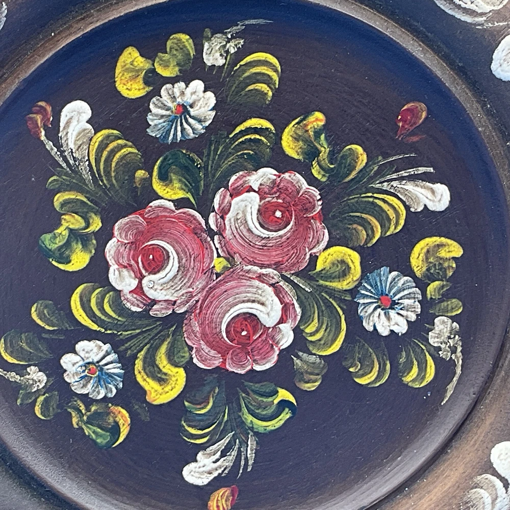 Vintage Hand Painted Floral Wooden Plate- Approx 9 1/4” Diameter