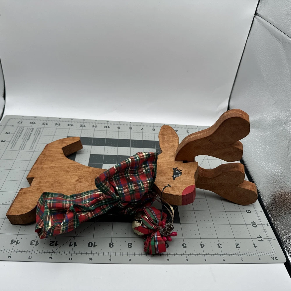 Vintage Hand Painted Wood Reindeer Christmas Decoration 15” Pre-owned. Some wear as shown. See measurements and pictures.