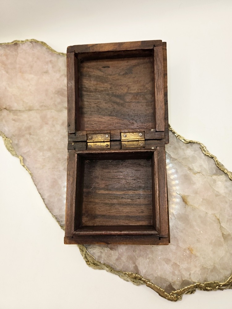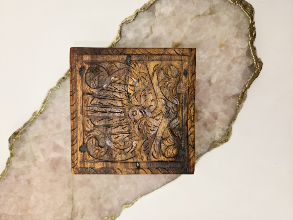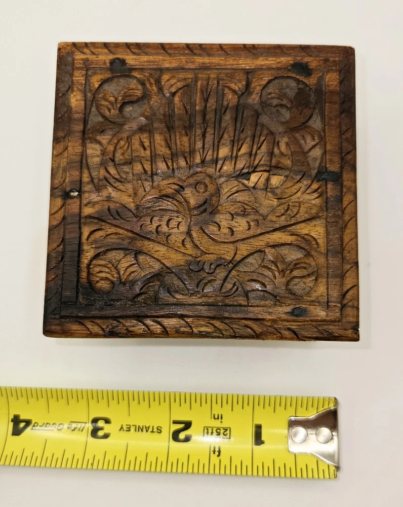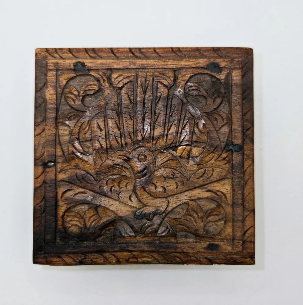 Size: Small Type: Trinket Box Pattern: Floral Features: With Lid, Carvings Color: Brown Country/Region of Manufacture: India Collection: Keepsake Boxes Material: Wood Original/Reproduction: Original Brand: Unbranded Shape: Square Finish: Wood-Finished Customized: No Department: Adults Handmade: Yes Room: Any Room Theme: Art Occasion: All Occasions Subject: Boxing