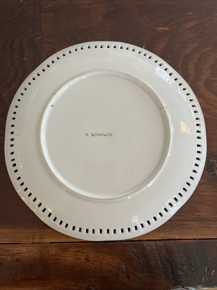 Vintage Hand-Painted Reticulated Wall Plate with Gold Edge and Floral Design for Timeless Decor