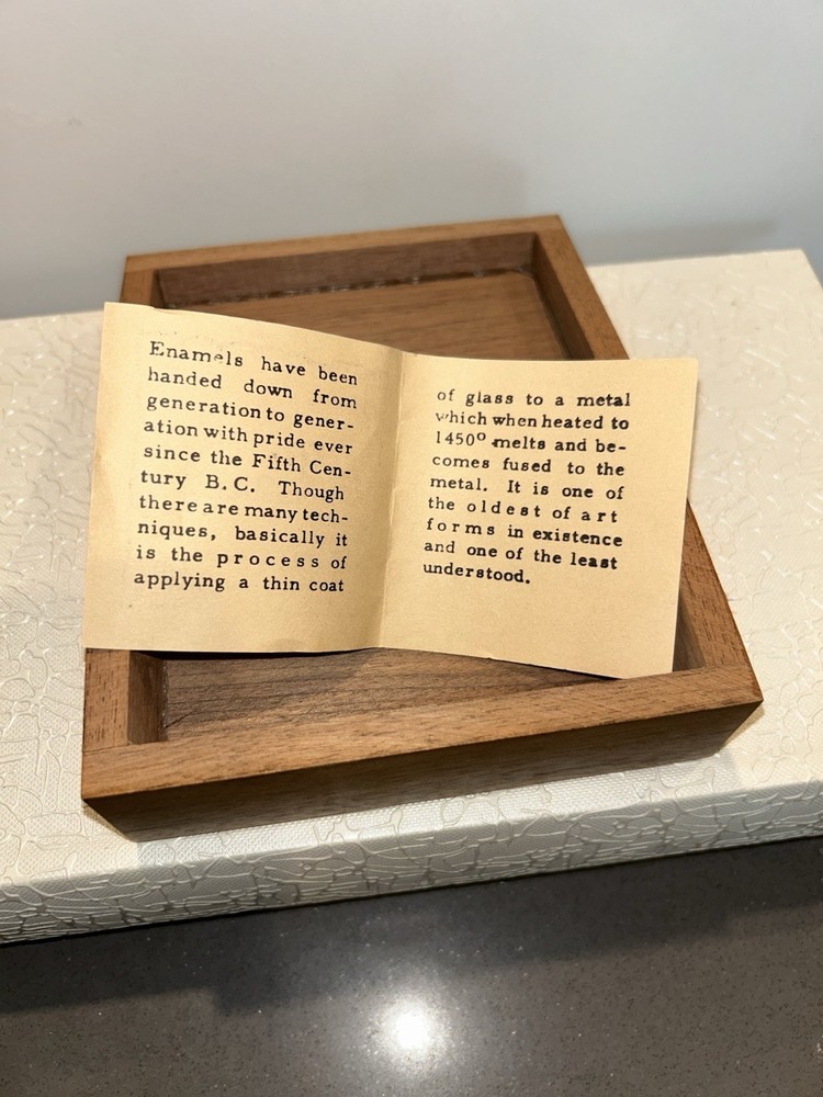 Handmade:YesColor:MulticolorFeatures:BoxedCollection:Keepsake BoxesCare Instructions:Clean with Damp ClothNumber in Pack:1Theme:ArtEngraved:NoPattern:FloralBrand:WoodenCountry/Region of Manufacture:United KingdomOriginal/Reproduction:OriginalMaterial:Enamel, WoodType:Trinket BoxRoom:Any RoomShape:RectangleOccasion:All OccasionsSuitable For:FurnitureDepartment:AdultsEra:Late 20th Century (1970-1999)Subject:BoxingSize:SmallPackaging:BoxCustomized:No