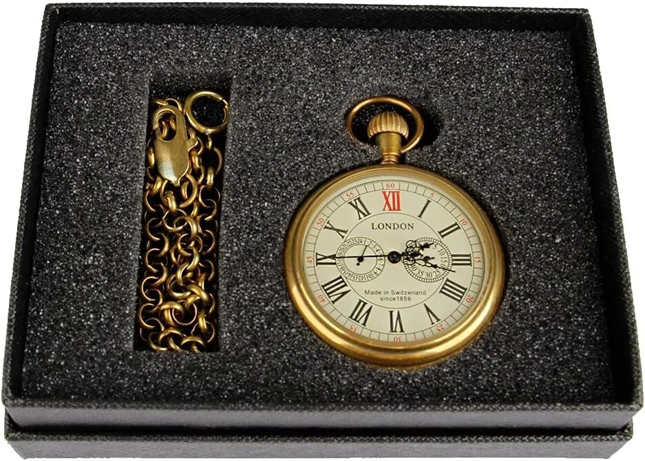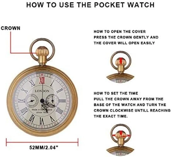 With Papers: No Display: Analog Case Material: Alloy Band Type: One-Piece Strap With Manual/Booklet: No Seller Warranty: No gtin13: Does not apply Water Resistance: Not Water Resistant Indices: Roman Numerals Caseback: Solid Features: Hand-Wind Mechanical Movement, Vintage Roman Numbers, Skeleton Dial, 24 hour small Dial, Second hand, Convenient Durable Style: Vintage Type: Pocket Watch Pocket Watch Size: 47 Closure: Open Face Dial Color: Gold Escapement Type: Unknown Department: Unisex Adults Customized: No Color: Gold Movement: Mechanical (Manual) Personalize: No Package Dimensions: 5.16 X 3.98 X 1.26 Inches; 3.53 Ounces UPC: Does not apply Brand: Unbranded With Service Records: No Number of Jewels: 0 Jewels Case Finish: Polished Case Color: Gold