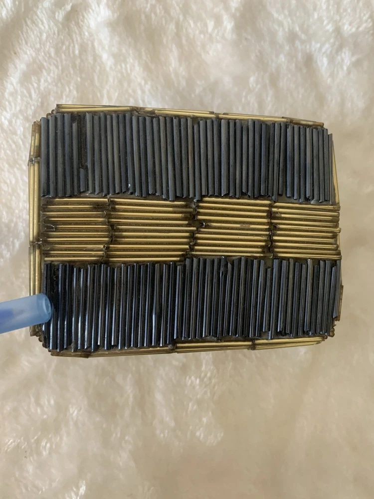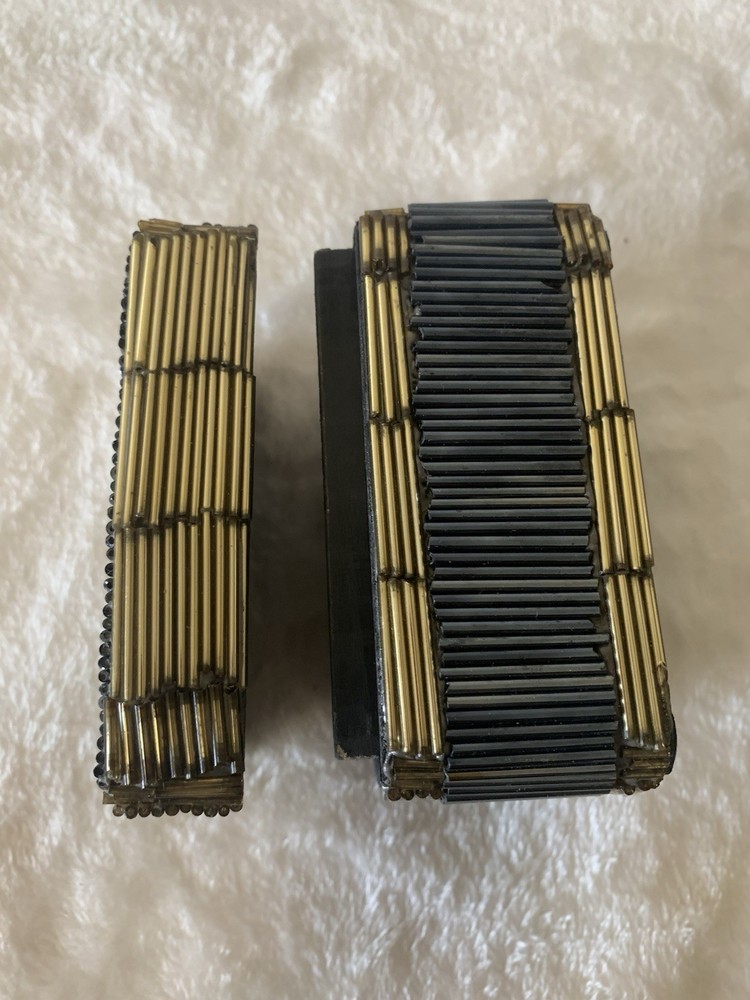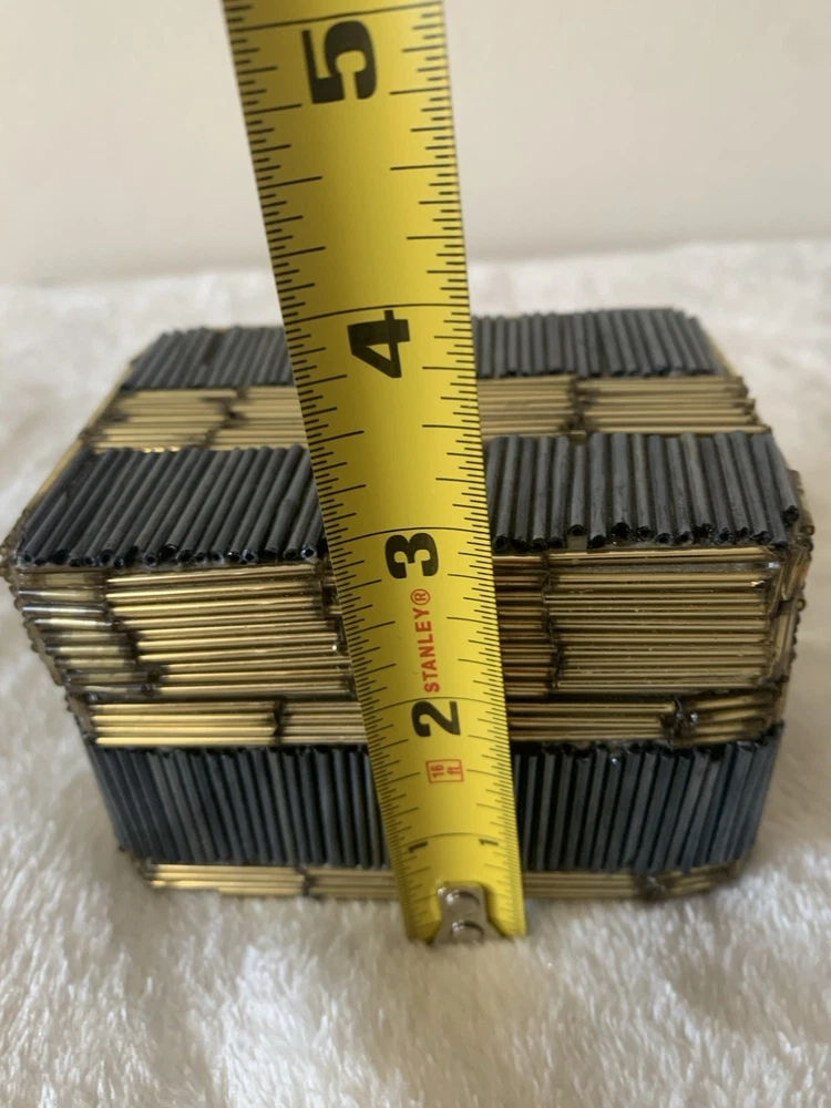 This vintage beaded trinket box is a charming addition to any room. Handmade with a multicolor design, this small rectangular box is perfect for storing jewelry or other small items. Ideal for all occasions, this unique piece adds a touch of artistry to your decor. The trinket box comes packaged in a box and is suitable for furniture use. Clean with a damp cloth to maintain its appearance, this original piece from the Keepsake Boxes collection is a lovely addition to any home.
