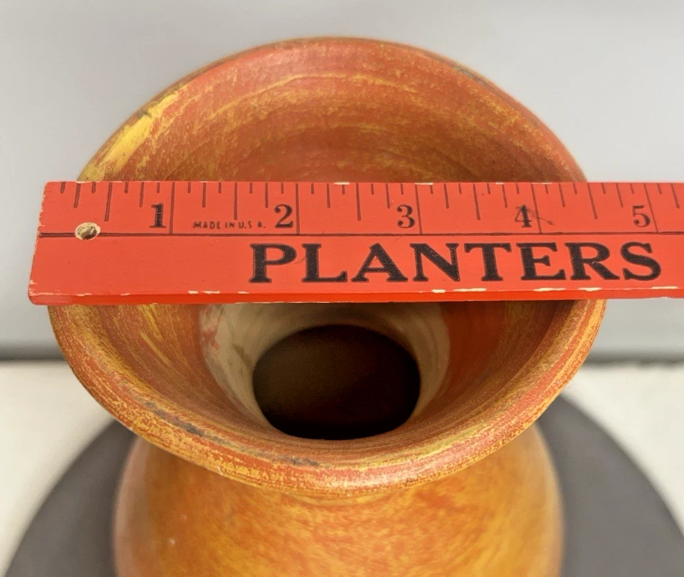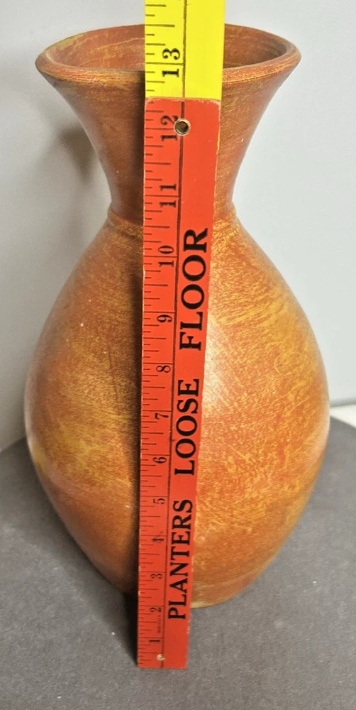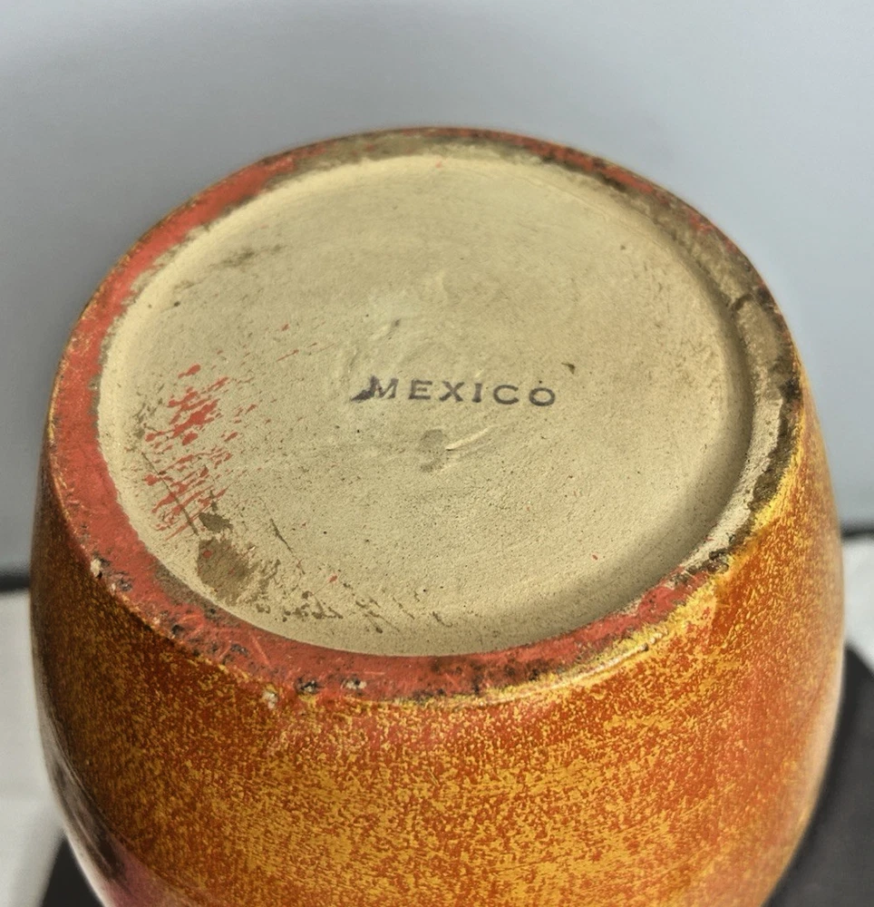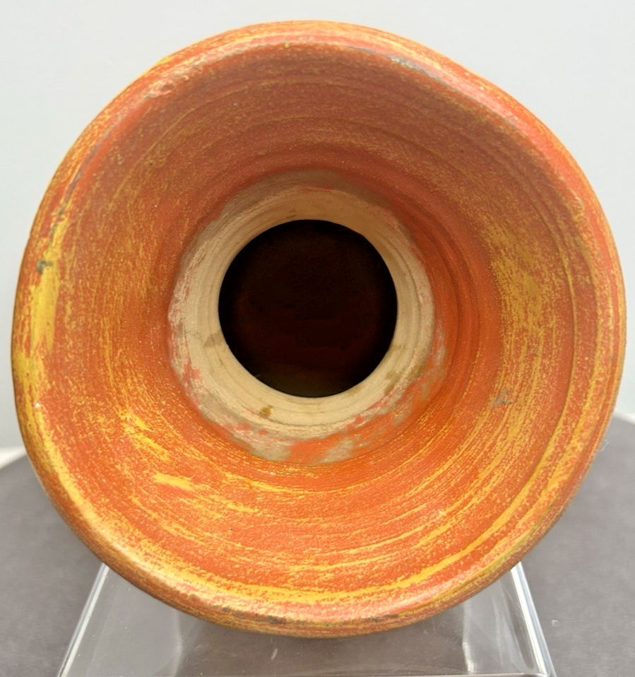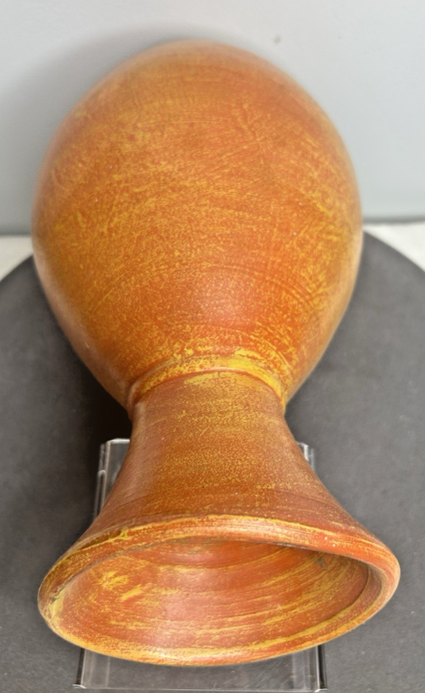 This vintage large Mexican hand-thrown orange/yellow pottery vase stands at 13 inches tall and was produced during the late 20th century. Made from clay using traditional pottery techniques, this one-of-a-kind piece embodies the Arts & Crafts/Mission Style popular in that era. Handmade by a studio artist, this original art pottery showcases the beauty of handcrafted craftsmanship and vibrant colors. Weighing 4 pounds and 2 ounces, this decorative vase is a unique addition to any home or collection. This piece is not signed by the artist, but it is marked "Mexico". Vintage Large Hand Thrown Orange Yellow Pottery Vase 13” Tall ~ Mexico is in excellent vintage pre-owned condition with NO chips, cracks or repairs. Please review all pictures for proper assessment of its excellent vintage pre-owned condition.