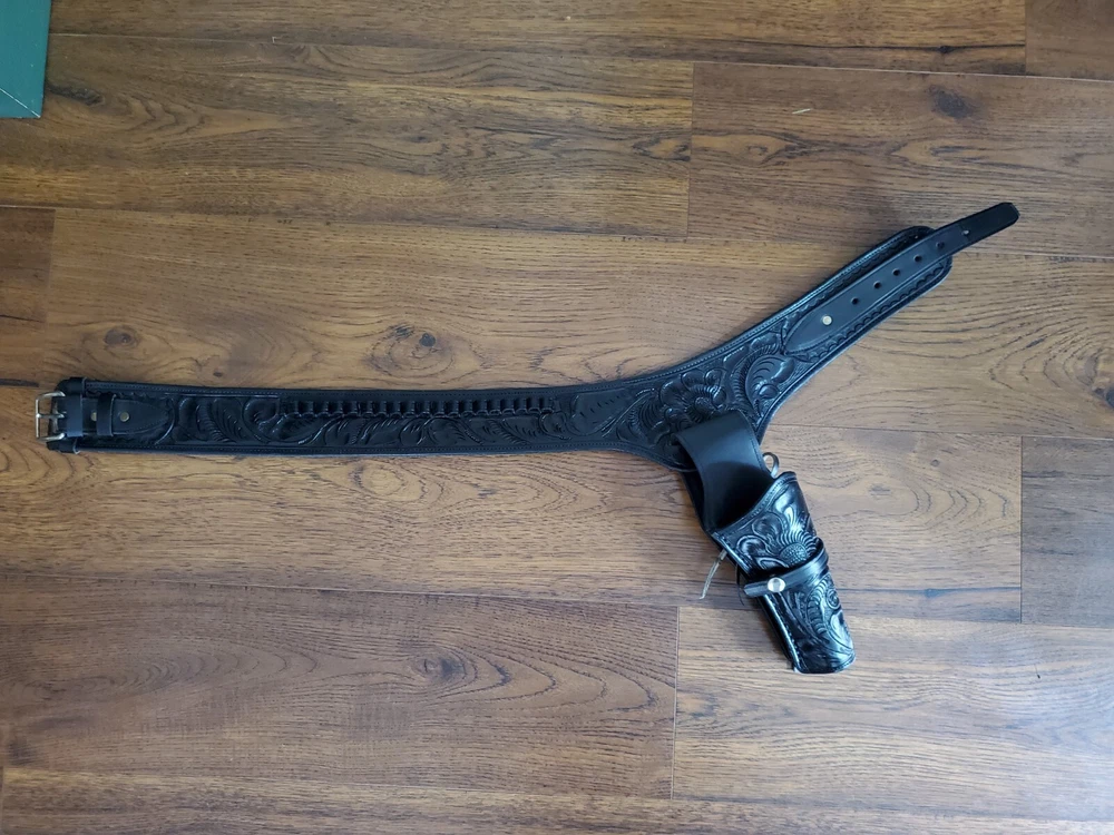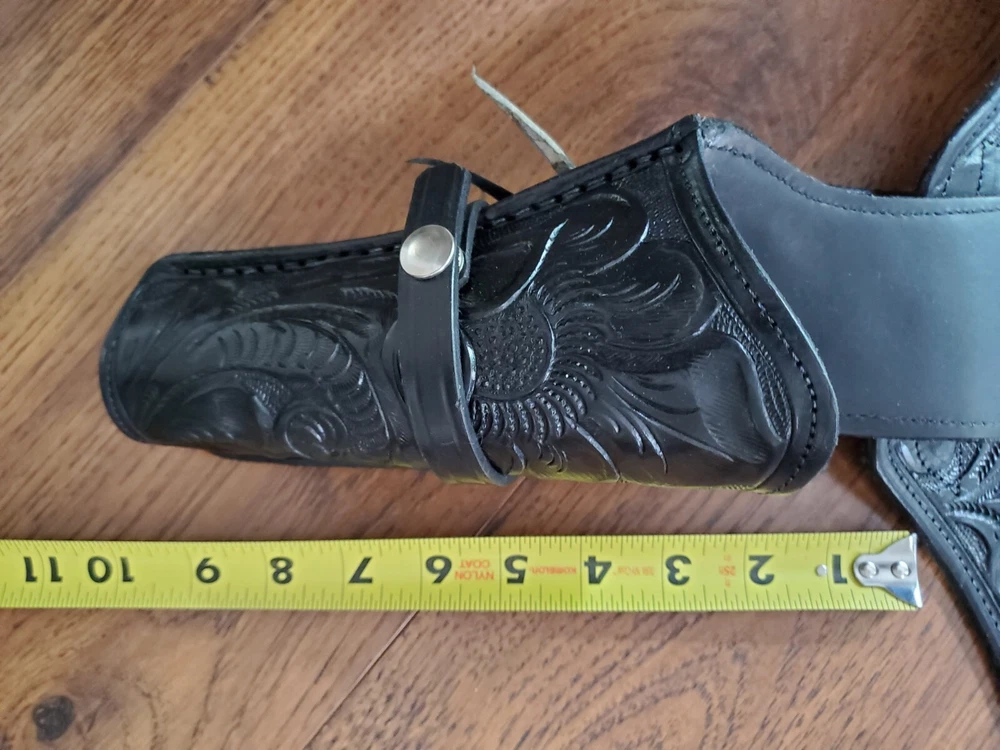 Handmade Leather Gun Holster Belt 10 Cartridge Holders Made in Mexico 34/38 Vintage, see pics for measurements, good condition, as pictured, no returns. Shipped USPS