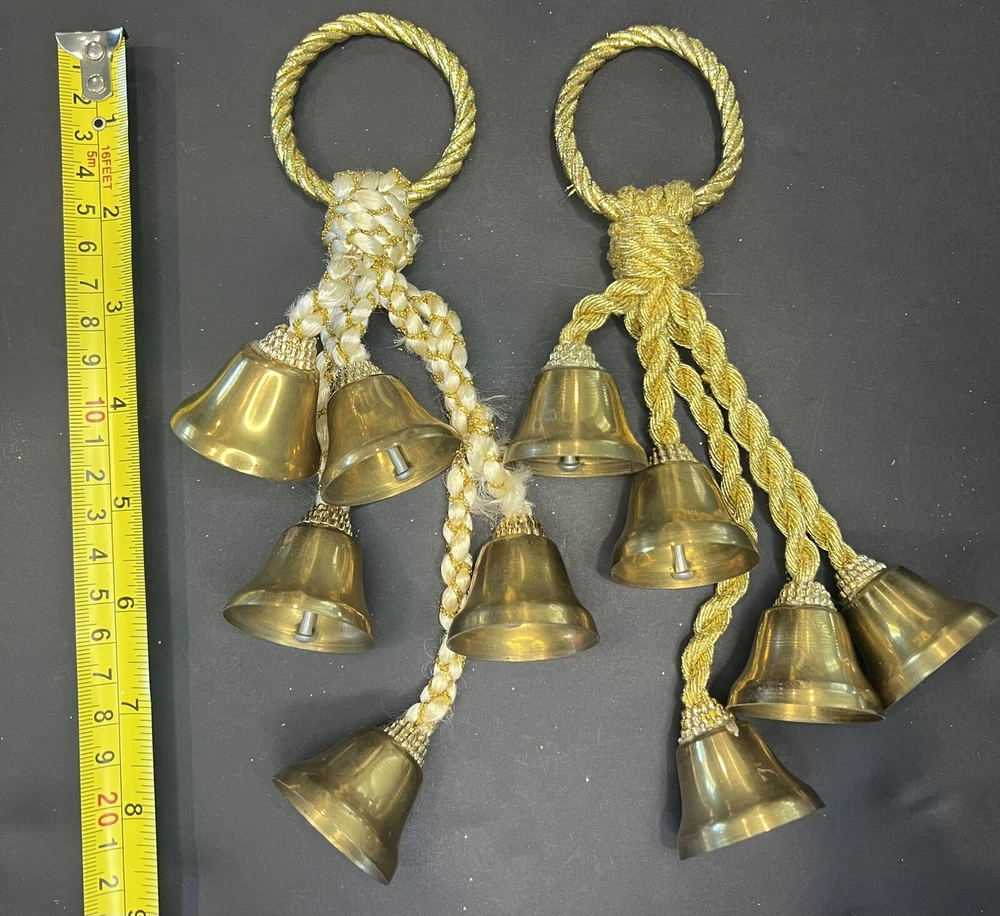 Vintage Hanging Brass Bells Lot Of 2 Holiday Seasonal Christmas