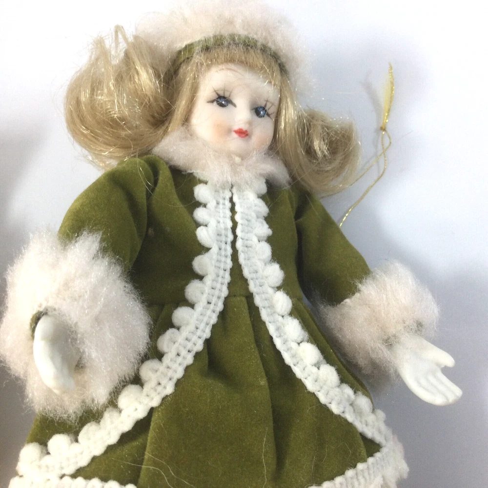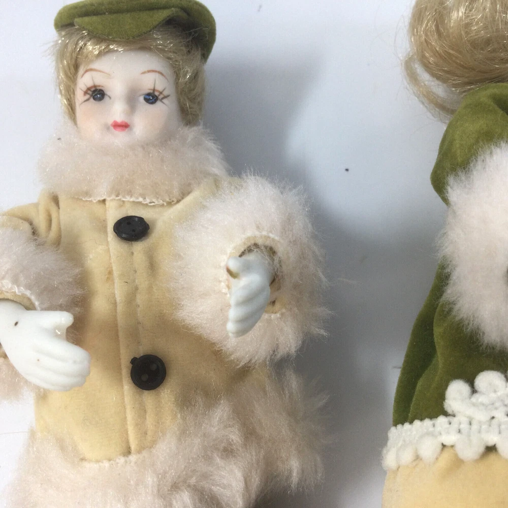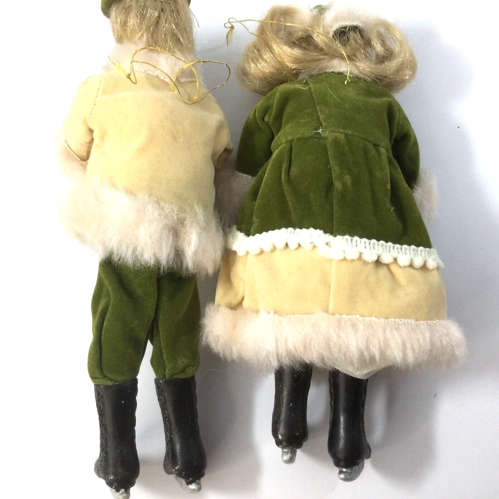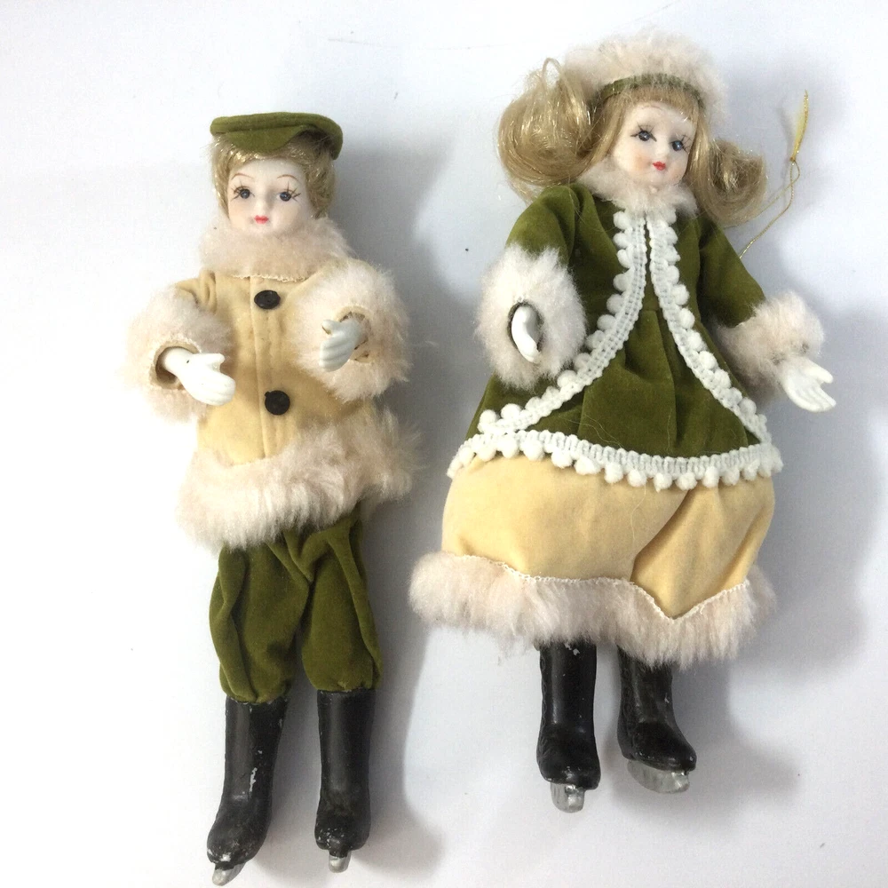 Vintage Hanging Ornaments Porcelain Skating Dolls Boy Girl Children. They are 7" H. Good condition of dolls. Few scratches on the black boots, photos 4 and 5. InvN/GS/1