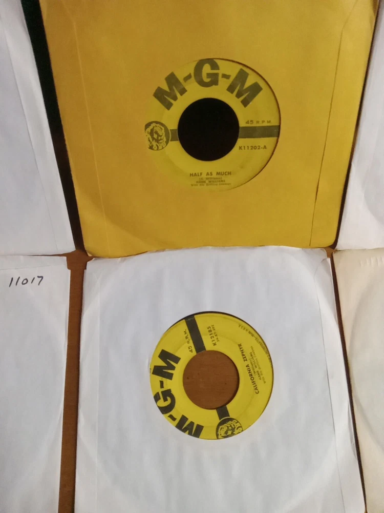 This lot of 9 Hank Williams 45 RPM records from MGM Records includes hits like "Angel of Death" and "Thank God". The records are in paper sleeves with a yellow color and made of vinyl material with a vinyl . The records are singles and have a record size of 7". The records are perfect for collectors of outlaw country and country music from the 1950s era. The lot is a great addition to any music collection and is a must-have for fans of Hank Williams. The records were manufactured in the United States and are in excellent shape.
