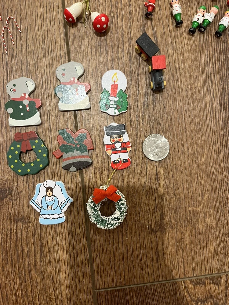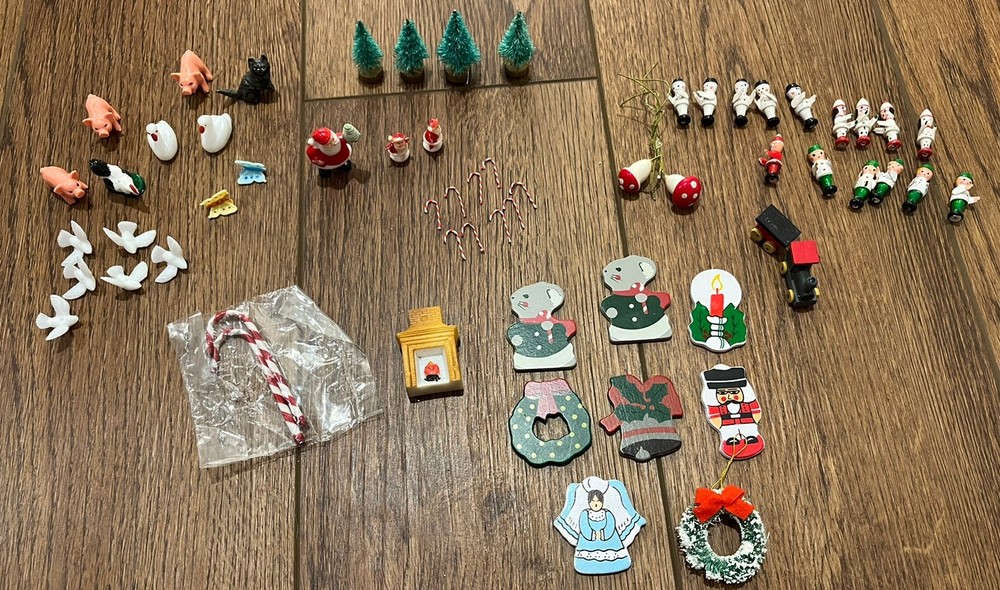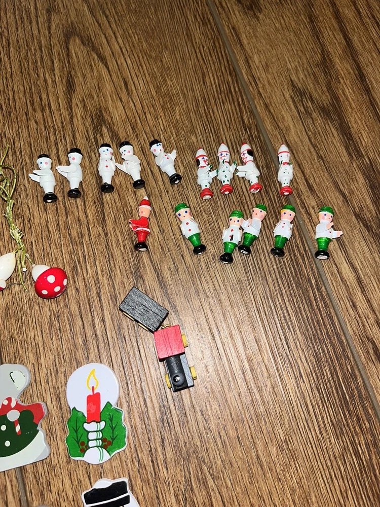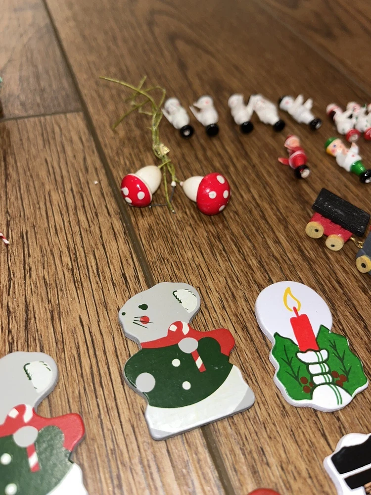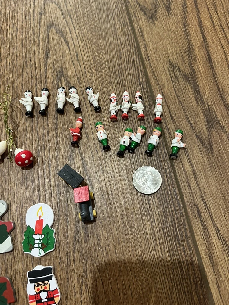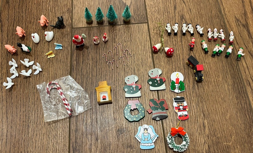 This is a great lot of tiny items. Perfect for a doll house, or decoration. Santa, swans, doves, Christmas trees, pigs, candy canes, etc. Good pre-owned condition. Add some festive flair to your holiday celebration with this charming collection of vintage hard plastic Christmas miniatures. Perfect for use as cake or craft decorations, these cute figures feature a variety of adorable animals, including swans and Santa Claus himself. With their charming anime-style design and playful attention to detail, these miniatures are sure to bring a smile to the face of anyone who sees them. Crafted from high-quality plastic materials, these Christmas miniatures are both durable and lightweight, making them easy to display and transport. Whether you're looking to add some fun to your holiday baking or decorate your home in style, these figurines are an excellent choice. So why wait? Add them to your collection today and start celebrating the season in style!