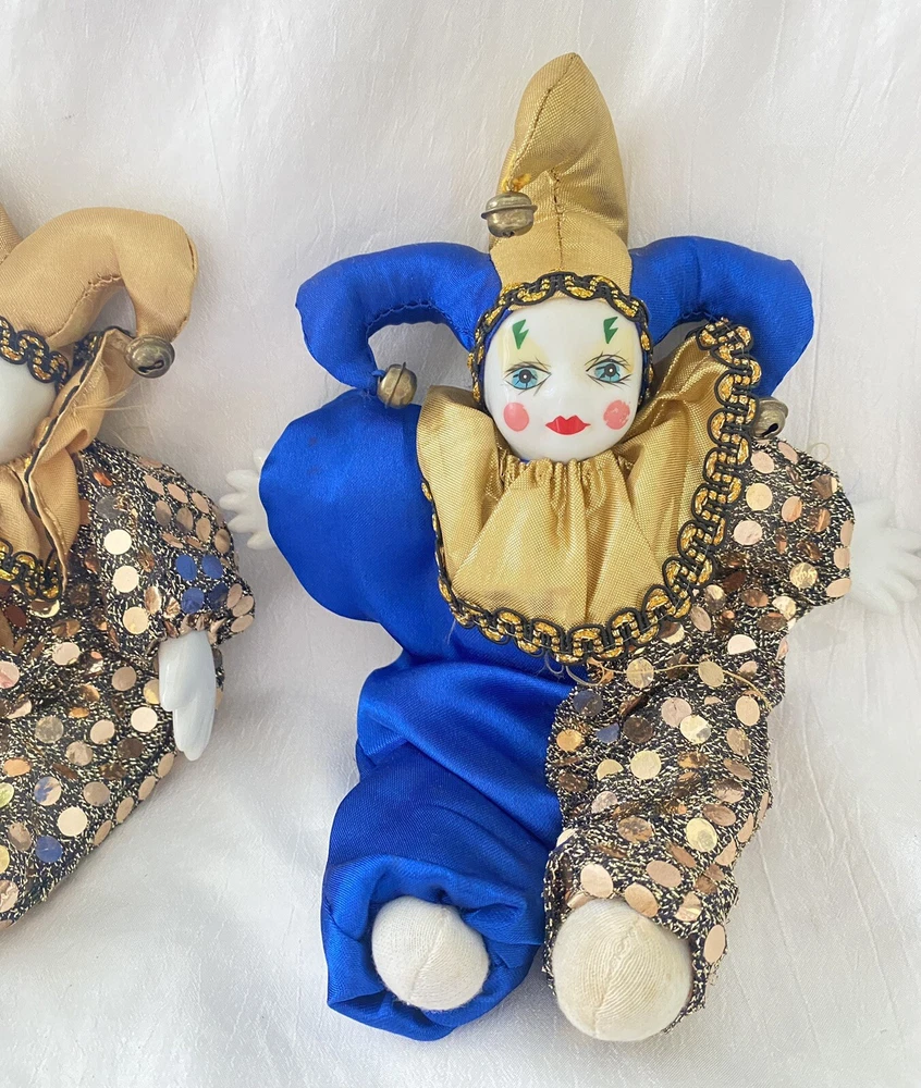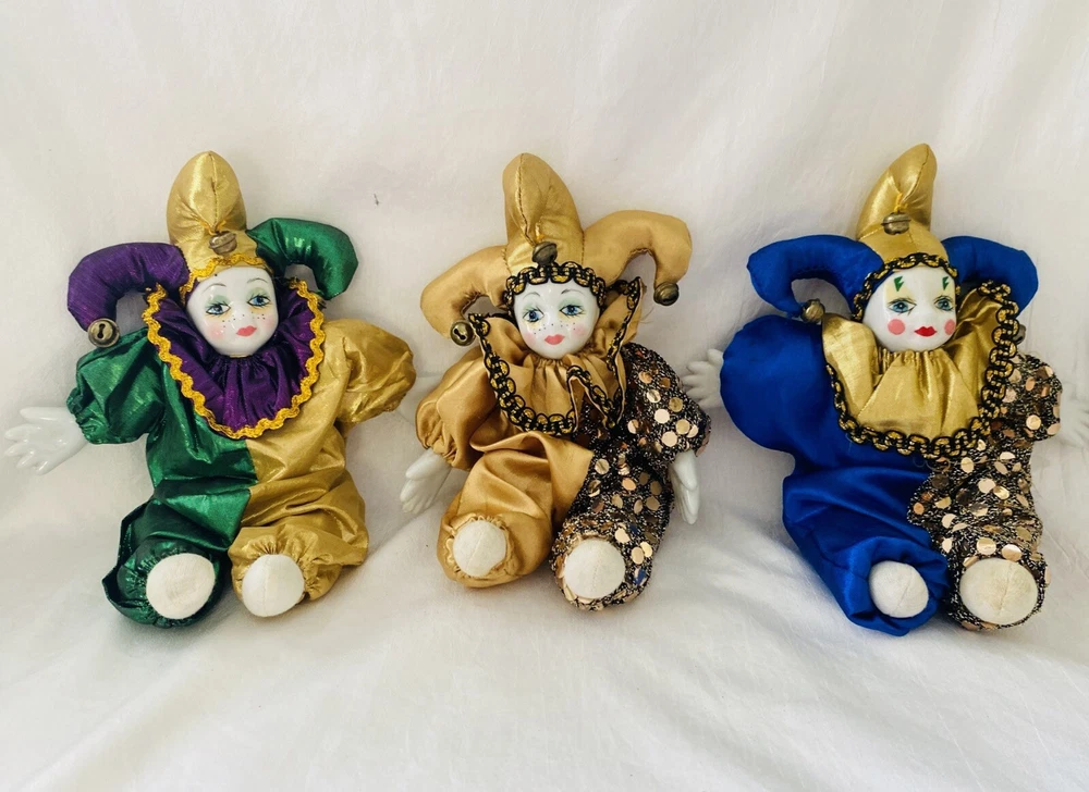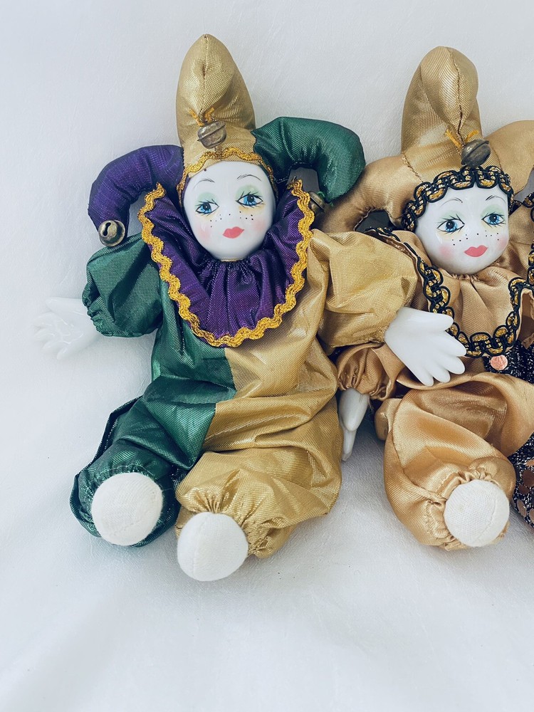 Description: Vintage Harlequin MARDI GRAS Doll Porcelain Art Clown 3 Pieces Collectible Bendable. Measures 9" Tall C 8" Wide (expanded). Shipping: Fast shipping ! I will ship your items to you the same day I receive your payment whenever possible. When payments are made after 2 p.m. Monday thru Friday or on weekends and Holidays I will ship your item the next business day. Packing, time, gas supplies, and fees are included, so if shipping is high, please pass on my items, thank you. I am always willing to combine shipping costs when more than one item is purchased, so check out the other items that I have listed!