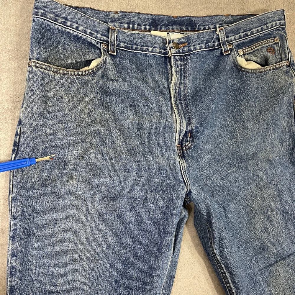 Vintage: Yes Seller Notes: “Very good pre-owned condition, defects shown in photos” Size Type: Regular Personalize: No Waist Size: 42 in Garment Care: Machine Washable Accents: Button, Embroidered, Logo, Zipper Style: Straight Fabric Type: Denim Handmade: No Fit: Regular Department: Men Material: Cotton Inseam: 30 in Color: Blue Size: 42 Features: Comfort, Easy Care, Pockets Brand: Harley-Davidson Type: Jeans Closure: Button, Zip Pocket Type: 5-Pocket Design Fabric Wash: Medium Pattern: Solid