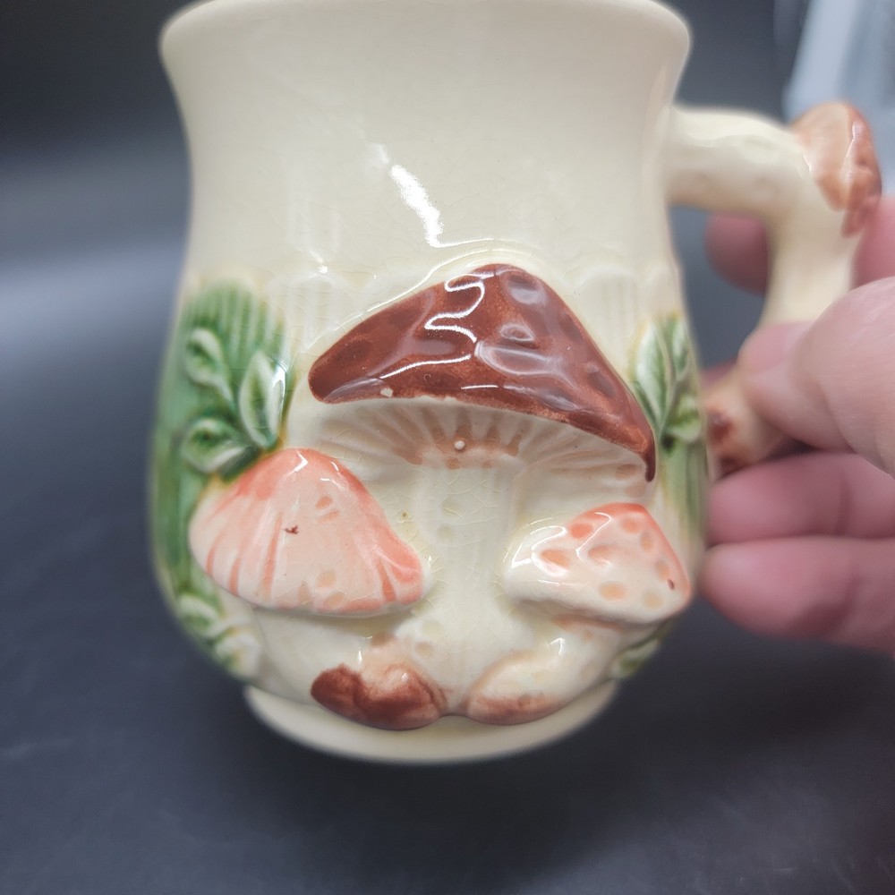mid-century mushroom mug empress by haruta 3d mushrooms 3.5 inches tall