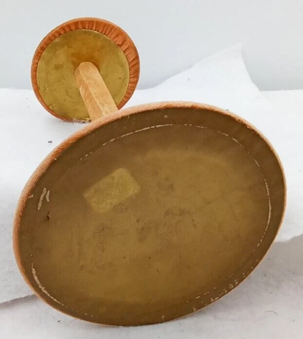 Vintage Hat Stand Holder Display Wood Velvet Fabric Bow Tan Round Victorian 8"