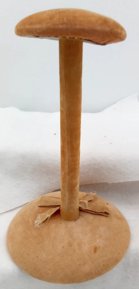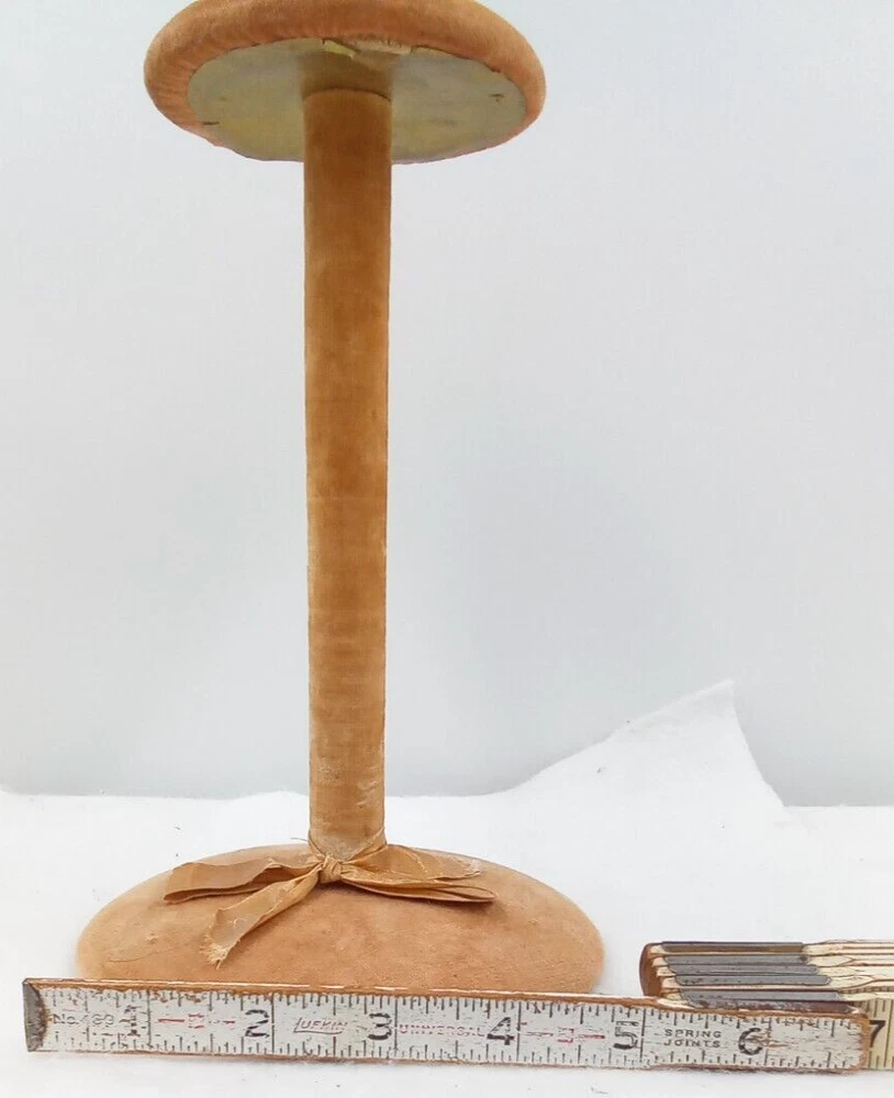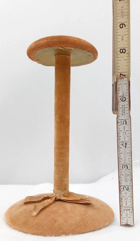 Personalize: No Material: Fabric, Wood Accents: Bow Size: 8 in Seller Notes: “Pretty Hat Stand! Pre-owned! Great Shape!” Handmade: Yes Season: Fall, Spring, Summer, Winter Fabric Type: Velvet Style: Hat Stand Country/Region of Manufacture: Unknown Color: Tan Brand: Unbranded Pattern: Solid Theme: 30s Features: Bow Vintage: Yes Department: Women