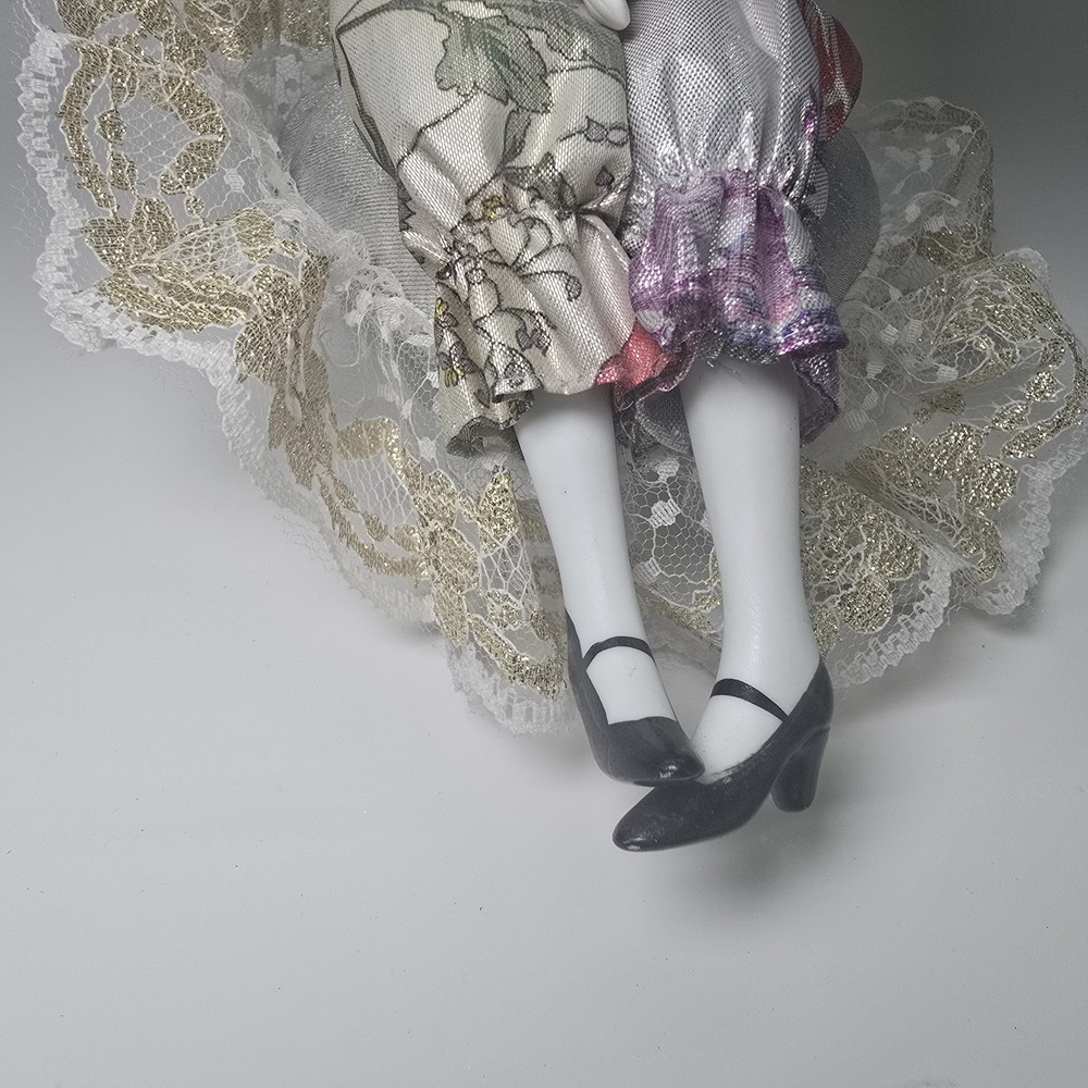 Add a spooky touch to your collection with this vintage porcelain harlequin clown doll. This collectible music box plays a haunting melody as the clown spins around in his chair. Made in Taiwan, this item is perfect for collectors of decorative music boxes or those who appreciate the eerie charm of vintage clown dolls. Perfect for display in any room, this item is sure to be a conversation starter.