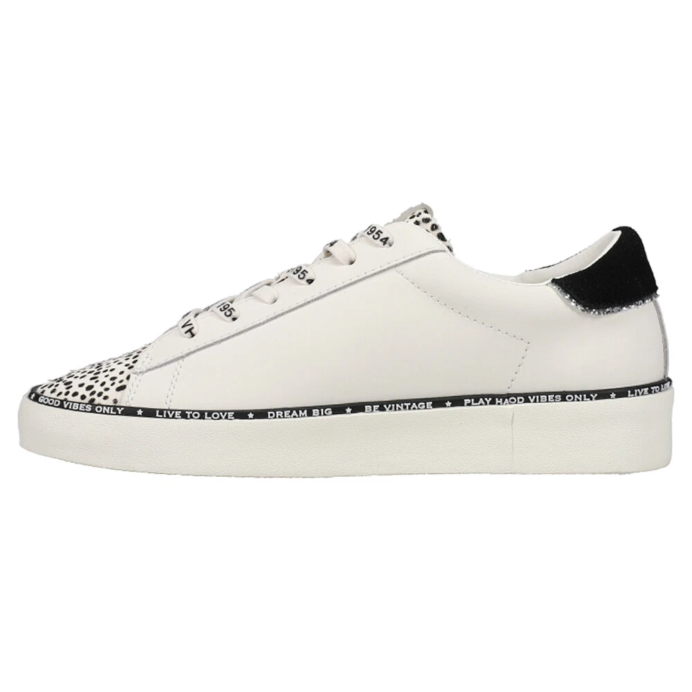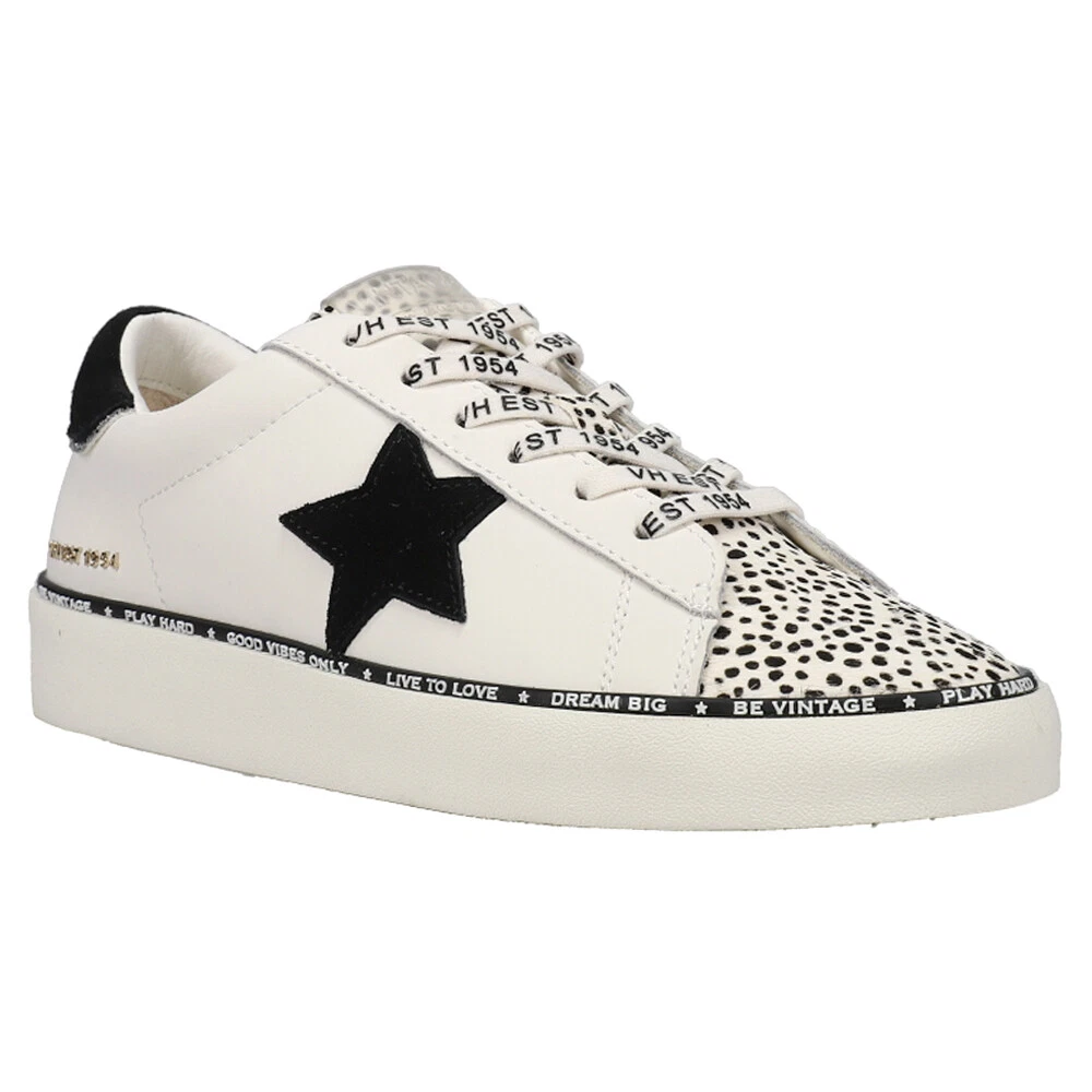 Nili Cheetah Platform Sneakers Product Details Leather and suede upper Cushioned footbed Cheetah print on the tongue down to the toe Rubber outsole These sneakers are perfect for when you need for every day wear! The Nili sneaker is a white sneaker that has a cheetah print on the tongue down to the toe, a black fabric heel patch outlined in silver glitter, and a black rubber outline around the shoe with different positive phrases on it. Additional Details Color: White Occasion: Casual Gender: Womens Age: Adult Brand: Vintage Havana