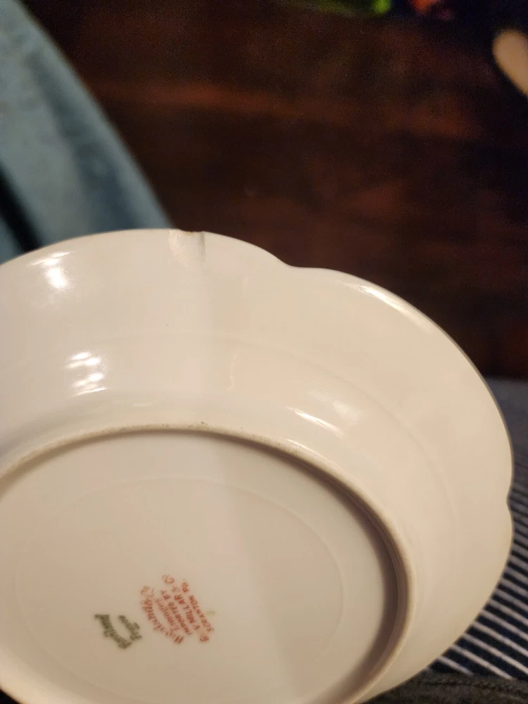 This vintage set of Haviland Limoges dishes is a true gem. Made in France, the round porcelain plates feature a beautiful Art Nouveau pattern with scalloped edges and hand-painted gold trim. There are a few chips on the back of the rim of two plates. I priced accordingly. Please examine pics and ask questions! These are really beautiful and rare find!