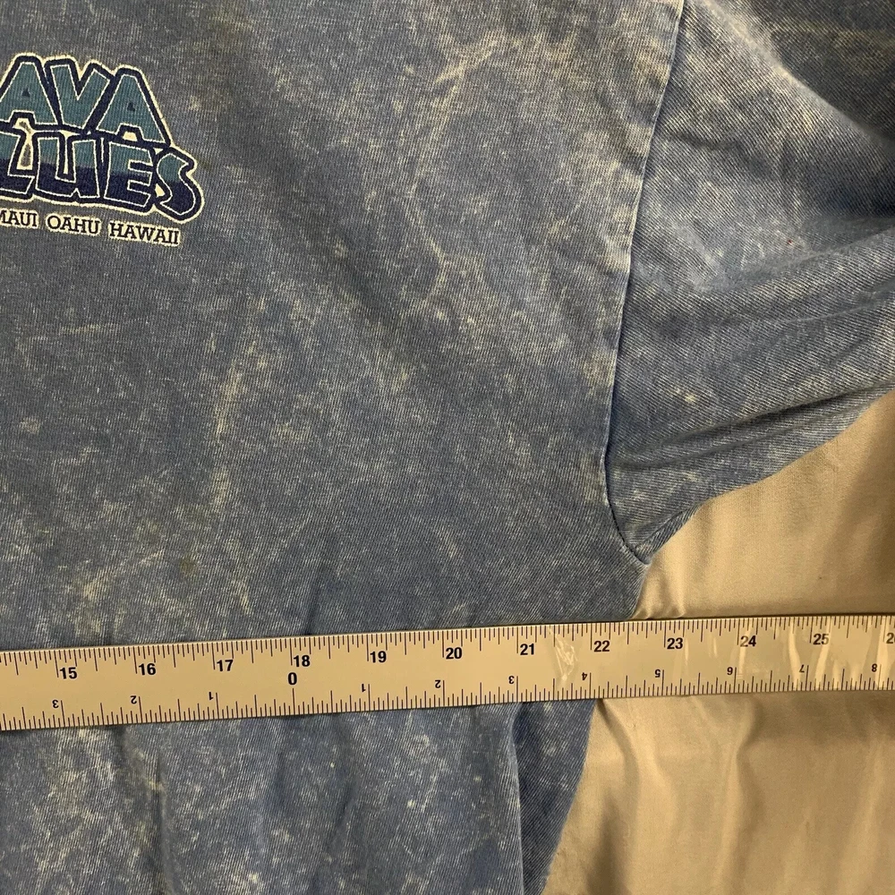 This vintage Hawaii shirt is a must-have for any fashion-forward individual. The blue cotton and cotton blend fabric features a solid pattern with a crew neck and short sleeves, making it perfect for any season. The XL size with a regular fit is suitable for men and the shirt is preshrunk, lightweight, and breathable, ensuring a comfortable fit. The shirt has a variety of features including a hood, full zip, and adjustable buttons. The double-sided design with an embroidered logo adds a touch of style to the shirt. It is a limited edition item and perfect for those who love nature, rock, hippie, university, American, 80s, classic, 90s, hip hop, or logo themes. Handmade in the United States, this shirt is a great addition to any wardrobe.