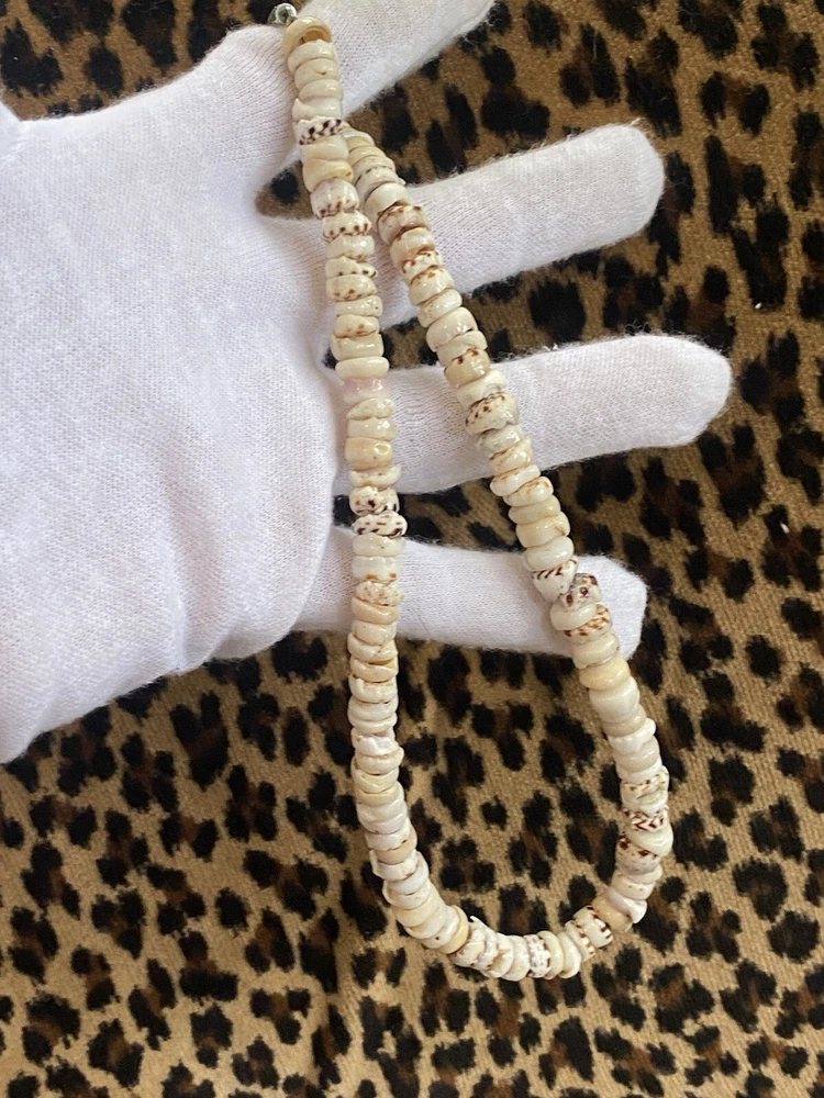 Estate Find! Vintage Hawaiian PUKA Bead Tiger Shell Surfer Necklace Barrel Clasp 16 inch This is a cool one! This would be a wonderful gift to a vintage jewelry or PUKA collector or a fantastic addition to your ever growing collection. *** I am currently listing a few more Puka necklaces so be sure to check them out. I am always happy to combine shipping! Please look at all of the images to form your own opinion as to the condition of the item. My personal opinion may differ from yours. To me, it is in groovy vintage condition -wear consistent with age. This is not a new necklace. From my experience as a kid growing up in the 70s with my own Puka necklace they were worn all the time - like ALL the time!!! Being shells, there may be slight imperfections, chips or pointy parts of the shells that are more natural and may have not been smoothed down/polished, etc. which give them character. Please carefully look over my images as you will be getting the exact necklace in this listing. I did not clean or polish the necklace. I know some folks like some patina so I leave polishing and cleaning up to the discretion of the buyer. I also did not want to ruin them with today’s harsh cleaners. For a smooth transaction, please read the entire description prior to making a purchase. Please check out all of the images as they are a major part of the description. Images may show wear/condition, details, maker mark and/or branding, approximate measurements and other details that will help you determine the condition and if this is what you were looking for. This would be a wonderful gift to a vintage jewelry collector or a fantastic addition to your ever growing collection. Prior to wearing, please get the item checked out, serviced or repaired by a professional as I can not be held responsible for how any item, clasp, stones, gems, chain, string, findings, etc. will hold up with any sort of wear. I am simply a reseller of the item. Not a jeweler or manufacturer. Thanks so much for looking! Condition : Vintage or preowned jewelry typically shows wear constant with its age. This may include things to expect such as light scratches, tarnish, in need of cleaning or polishing,etc. as it most likely has been worn and loved. That is why we love it so much. The images are a major part of the description so please zoom in and look closely so there will be no surprises and you know exactly what I am selling and you will be receiving. ** Most of the time, I try not to disturb any vintage/preowned jewelry by cleaning and/or polishing it in order to keep it in its original patina leaving it to your discretion. I do not want to take a chance ruining something. Depending on your own taste, you can either clean or polish it or keep it in its original state. My jewelry comes from estates, individual consignors, individual or bulk purchases, etc. In most cases, I do not know the history of the jewelry nor where it has traveled or been stored. Most importantly, I have no idea if it has been around pets, smoke, air fresheners or any sort of allergen or if it smells. (I do not smell jewelry) Thanks so much for looking! Disclaimer: Some images may have been magnified to show you details. I often use a penny as a prop to help you gauge the size. The penny and any prop, mannequin or measuring/weighing tool are not part of this listing - only the item mentioned in the title is for sale. Unless mentioned in the written description, the colors on my screen are the colors of the piece as I see it. Before making a purchase, you are accepting the fact that your device or computer screen may show a different color. Shipping: This item will be sent out with delivery confirmation and insurance to an eBay supplied address only. If you need the item to be shipped elsewhere, please change the address in eBay prior to completing your purchase. For international shipping, I use the eBay Global shipping program. All shipping, taxes, customs or anything else is taken care of and determined by eBay as I simply send items to a US shipping hub per the Global shipping agreement.