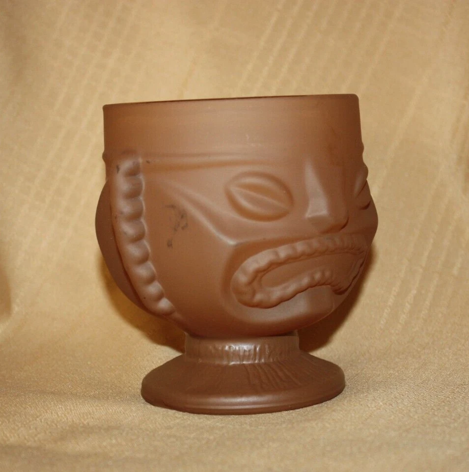 Vintage Hawaiian Tiki Pressed Glass Mug Bar/Goblet Two Sided - Happy Face & Sad Face 5”Tall Top Diameter - 4" Bottom Diameter - 3 1/4" No chips Very Heavy Please review photos carefully. The item in the photos is the actual item you'll receive. Questions? Need more photos? Just ask - we're happy to help. Sold as is...........