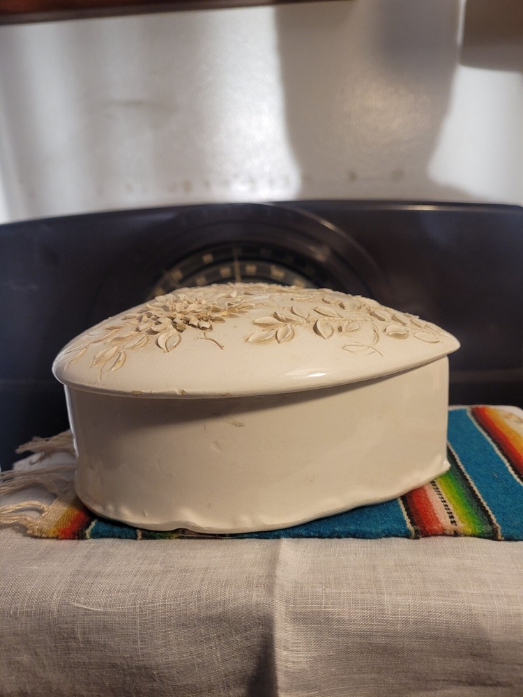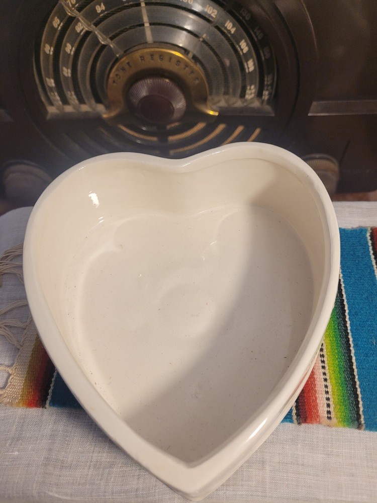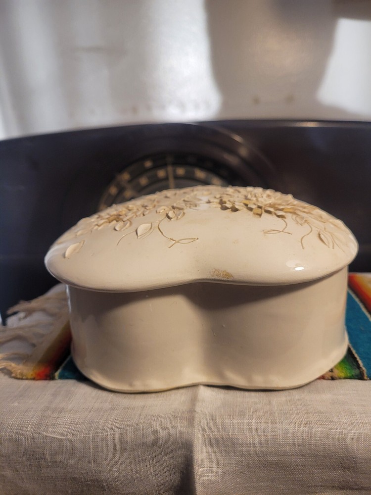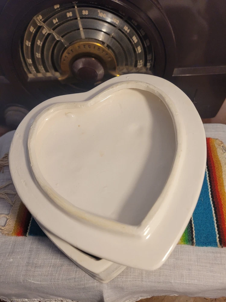 Vintage Heart Shaped Ceramic Jewelry Box in Good Condition